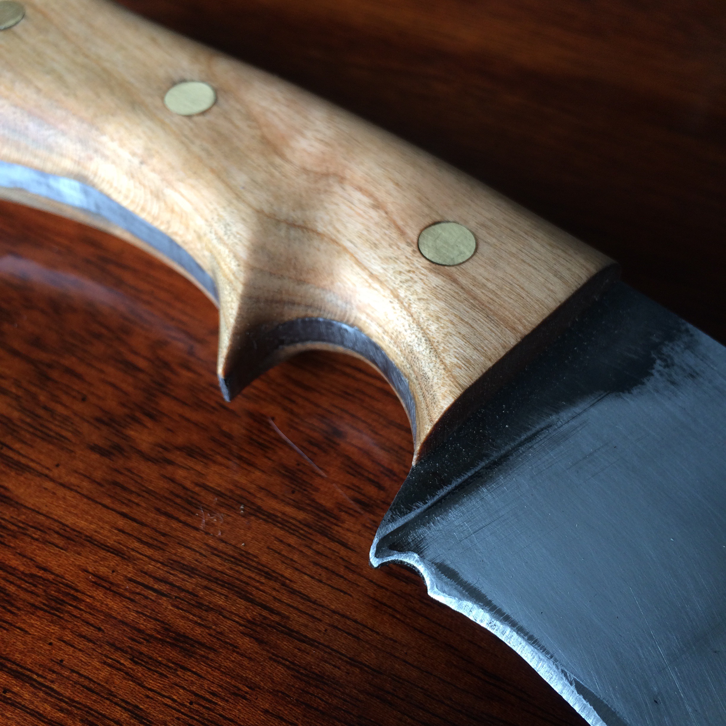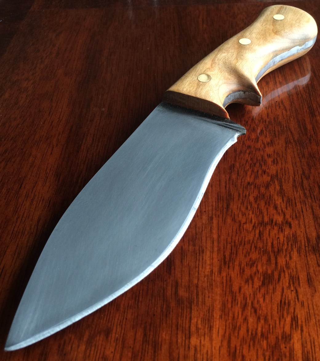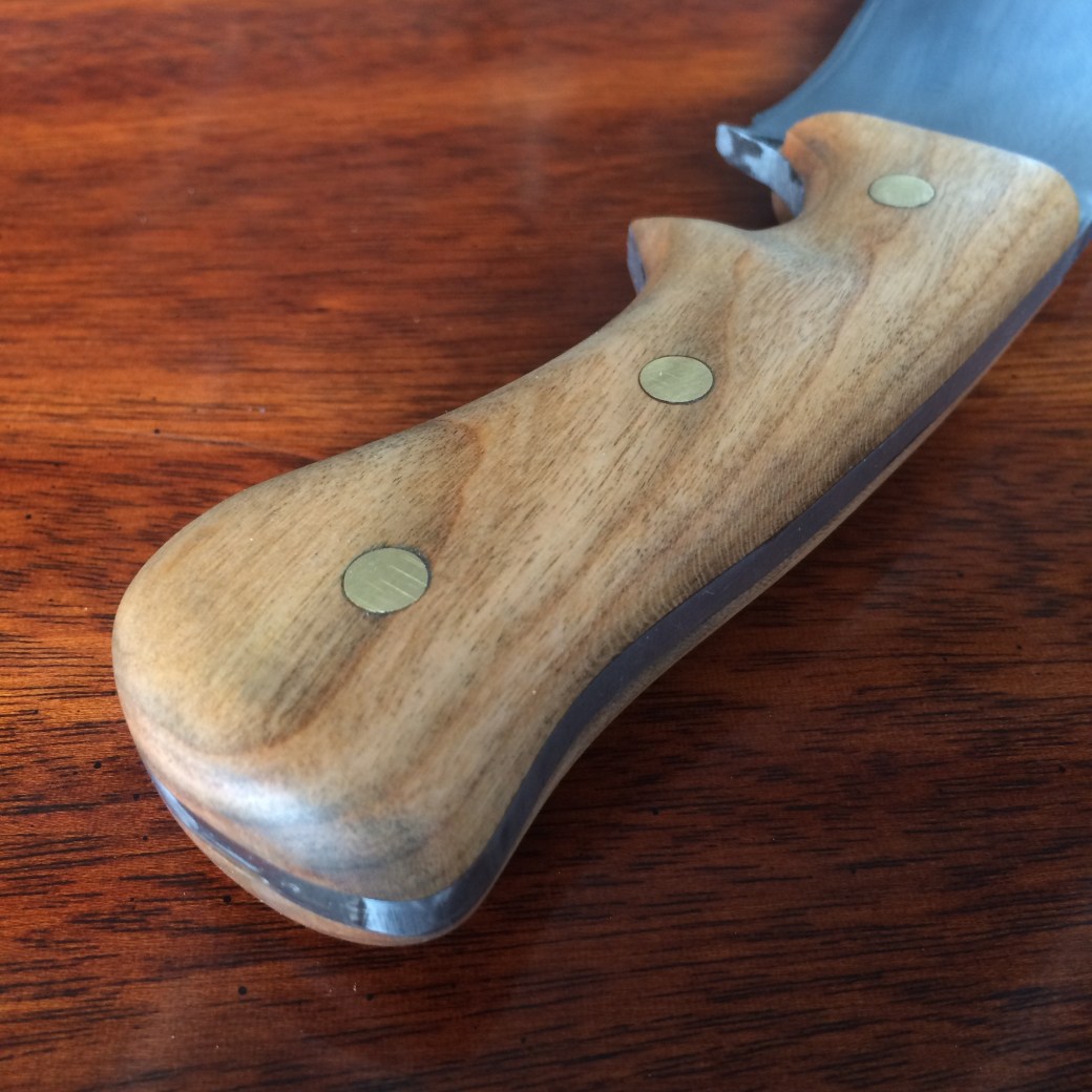 She has a gentle recurve on the blade- this helps to keep the knife edge from wandering too far when slicing through large volumes of material.