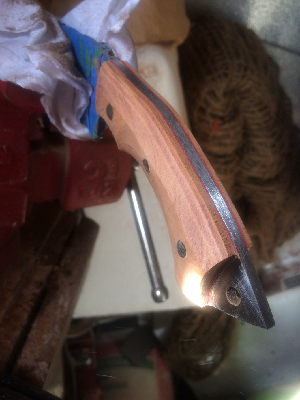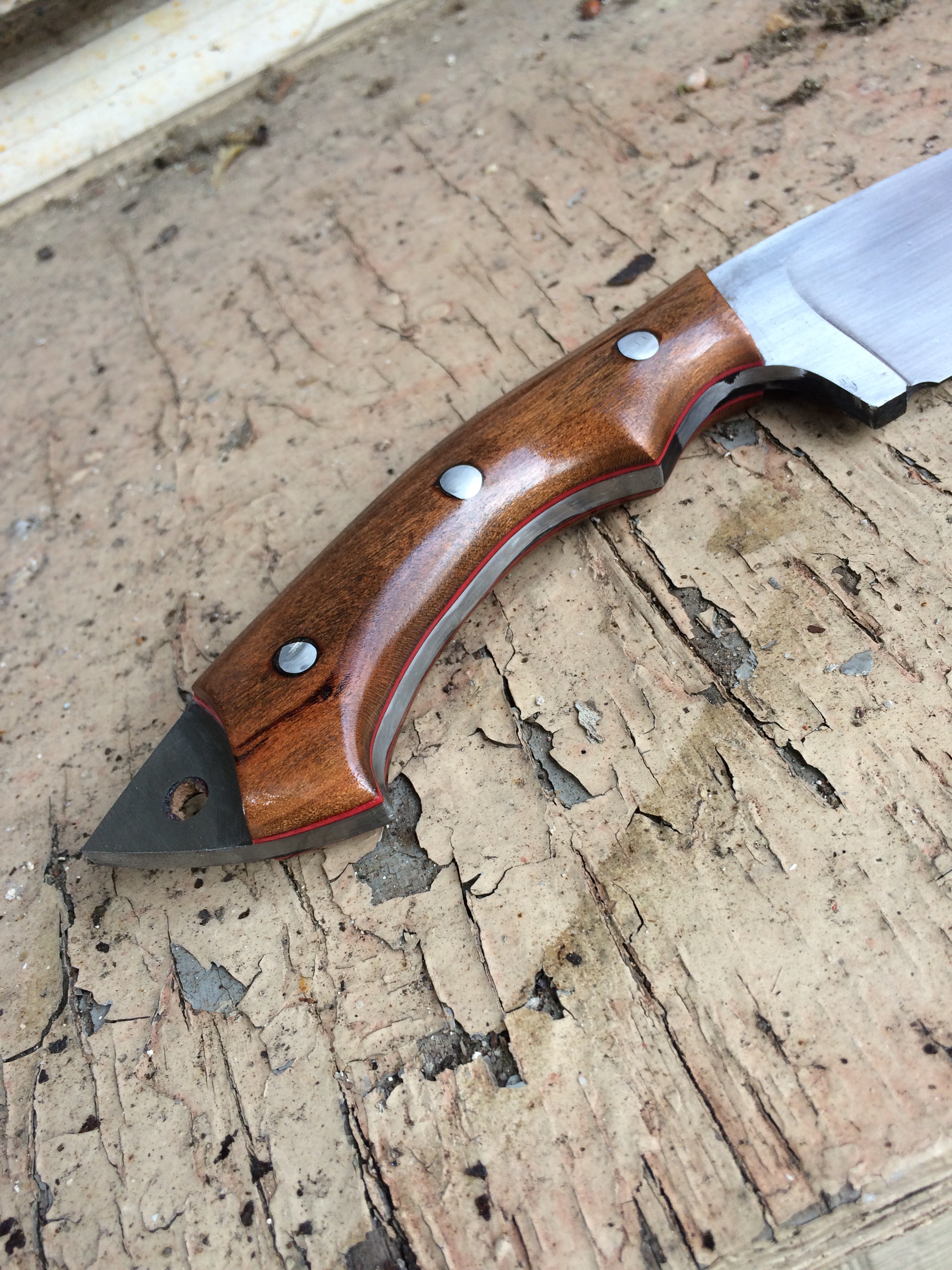 This knife was a commission for a gentleman who was a professional stuntman. He runs a screen printing company now, but his curriculum vitae shows him to be quite the daredevil. What I really enjoy about this is how he steps right up to the edge of what most people (myself included) would deem comfortable or sane, and then leaps right off: