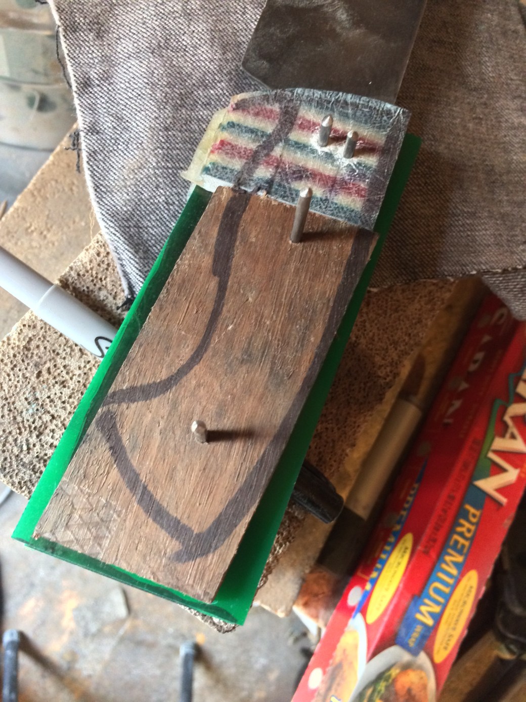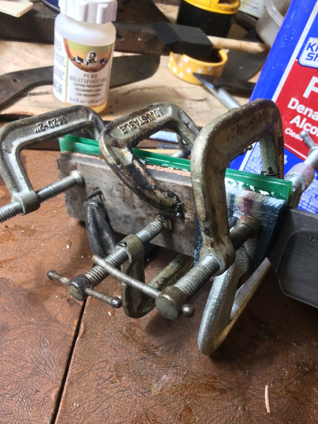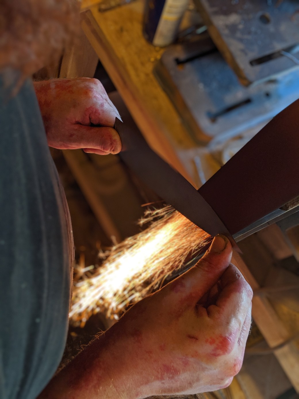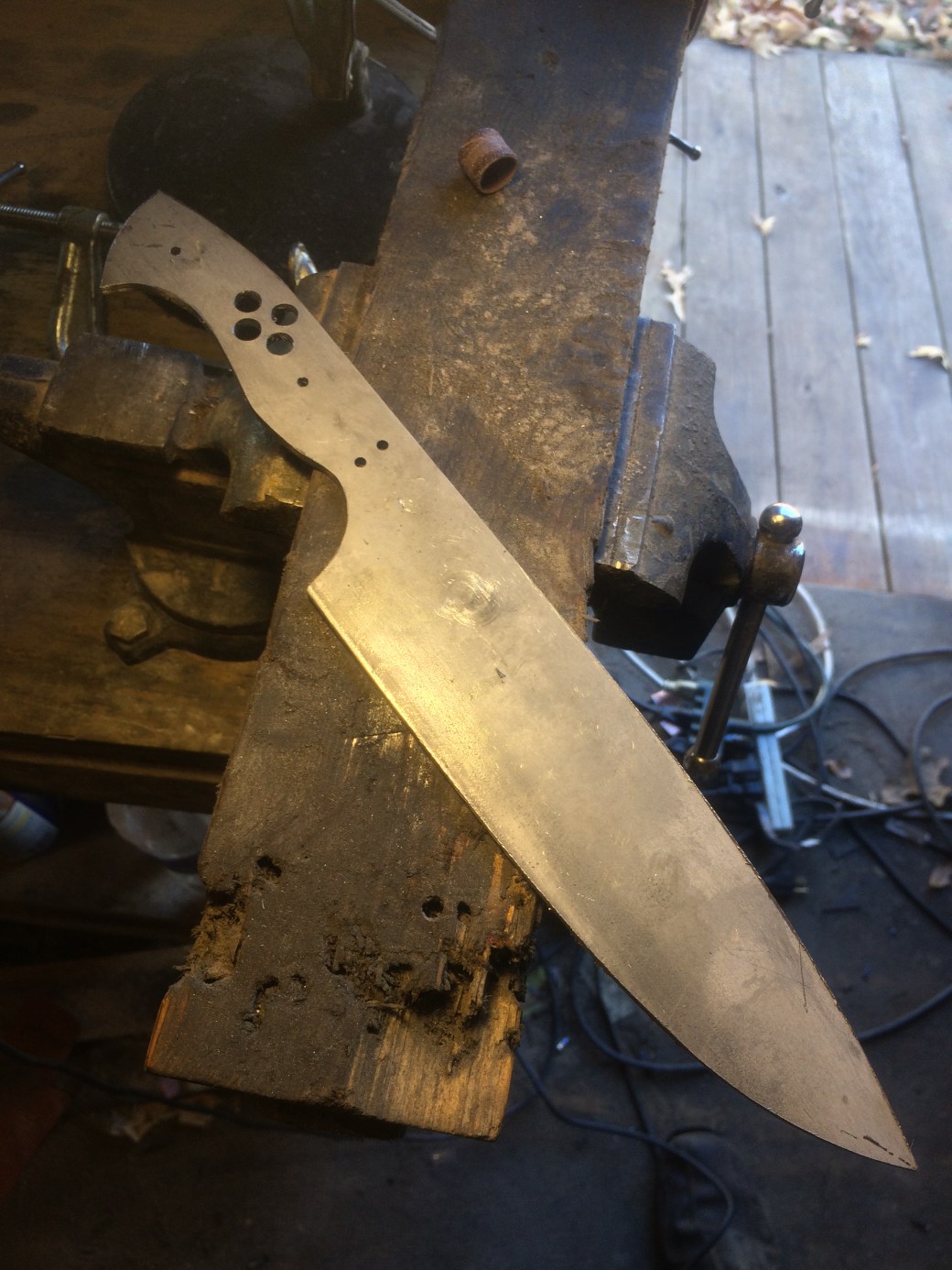 ….and despite our best efforts, warping does occur. Since the blade is still hot from the oil quench we have some time to correct it: