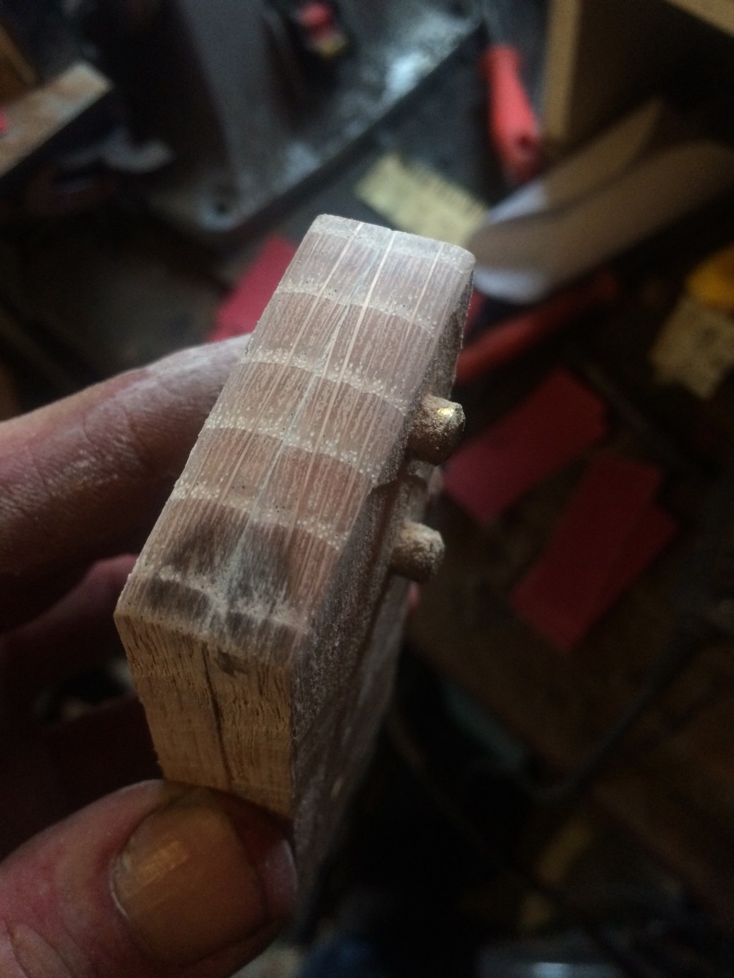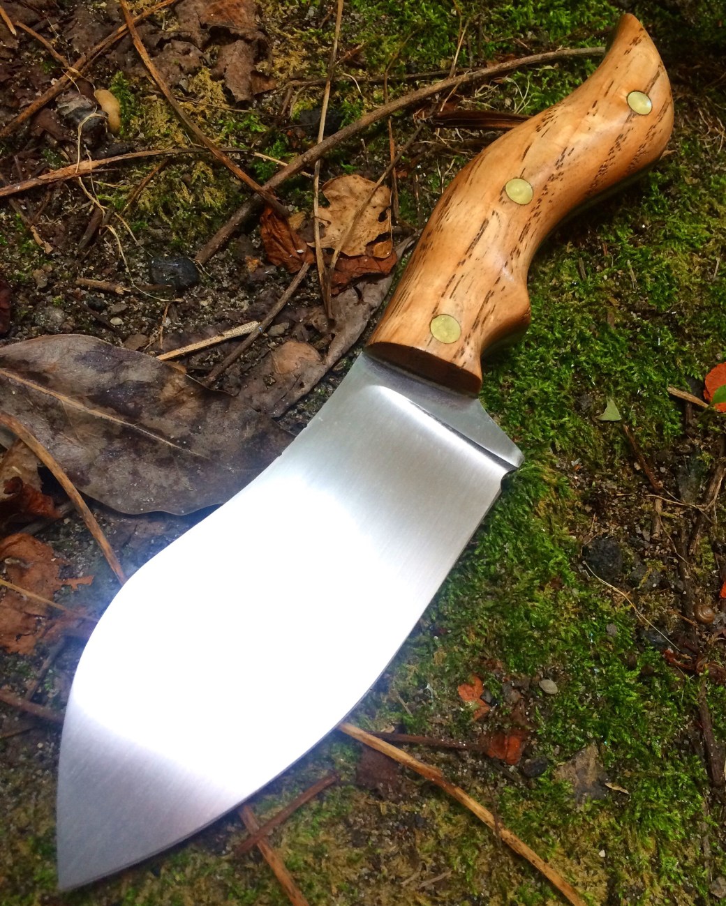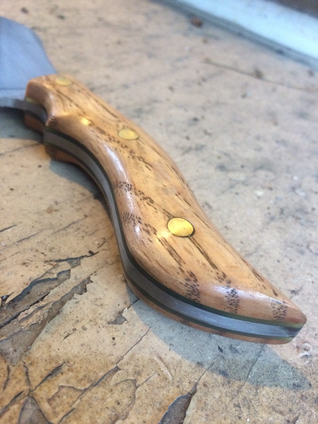In a continued practice of saying ‘yes’ I chose to use some of the Black Walnut I got from the tree job for the handle material. It fit nicely into the story of these knives. This is what it looks like sanded and polished.