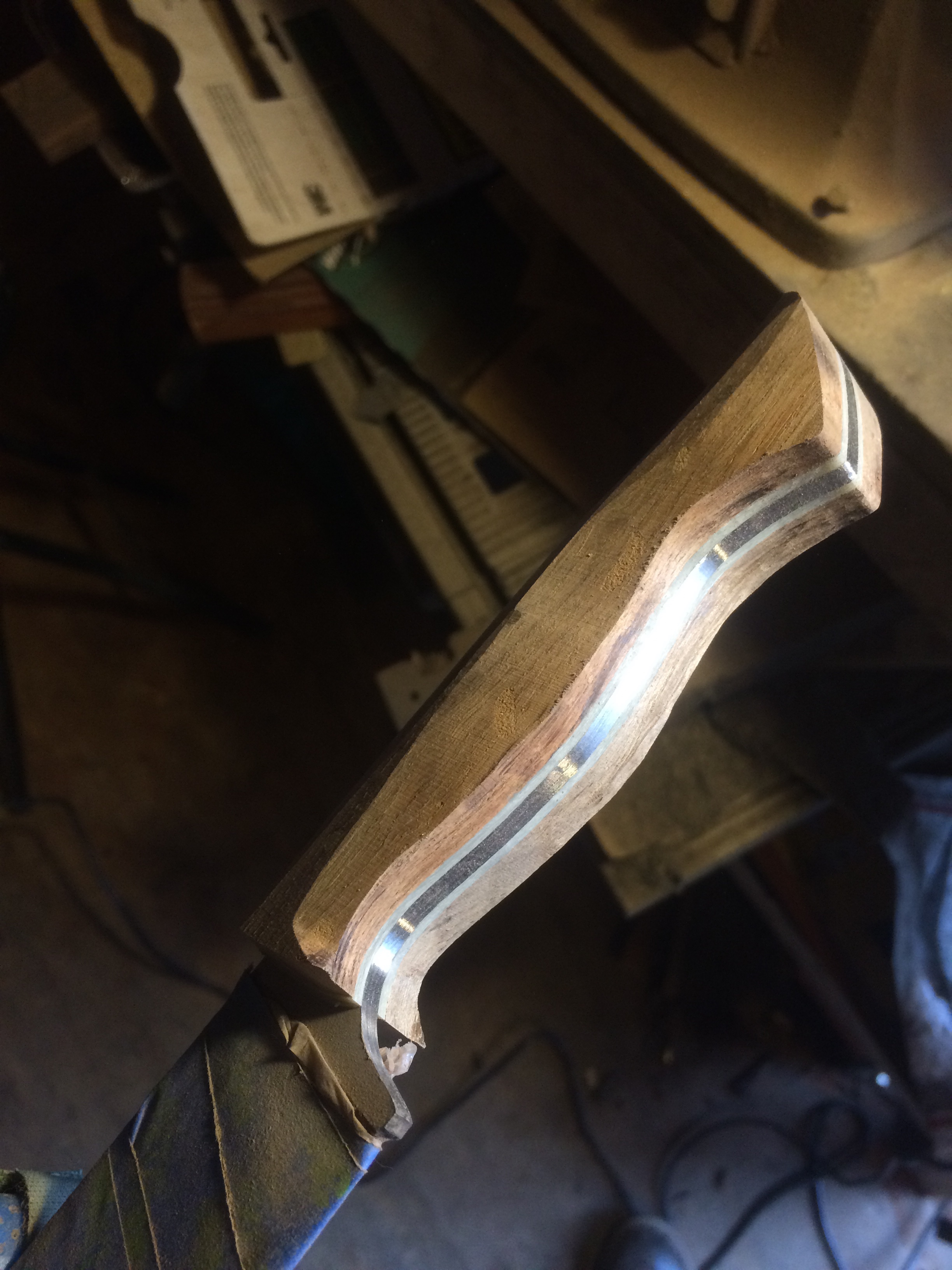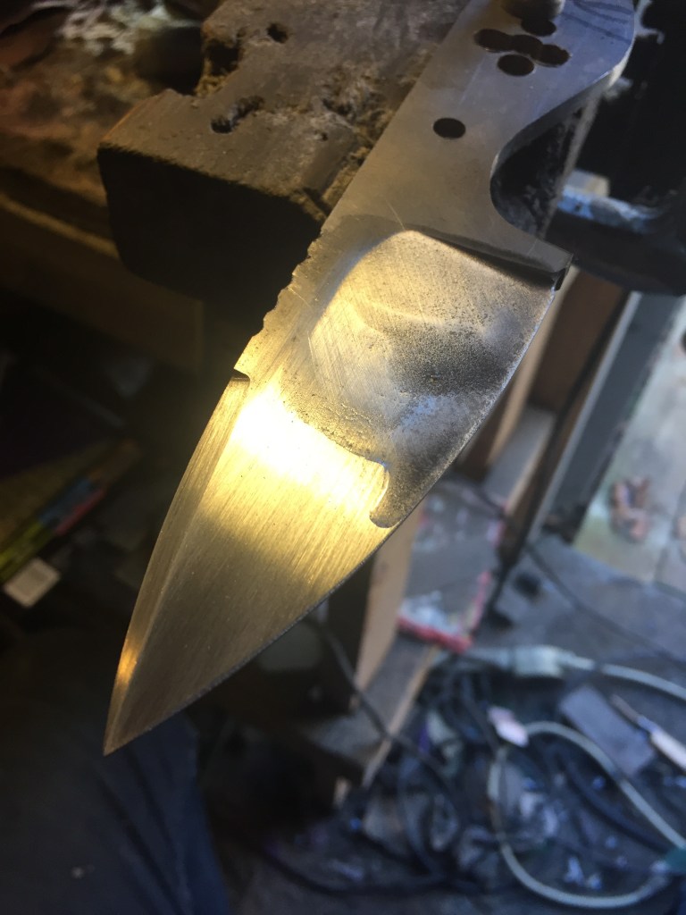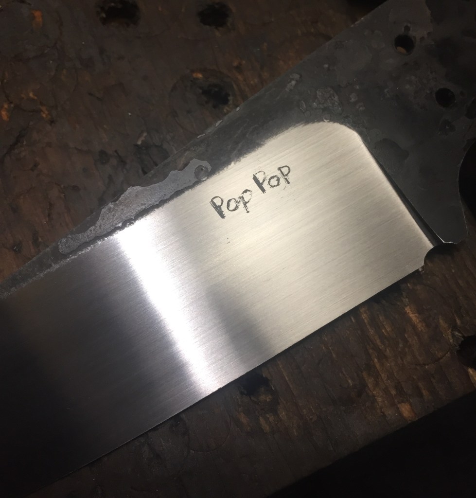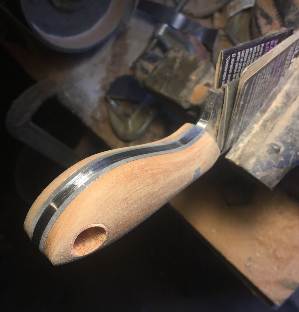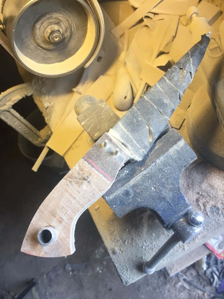 This is the top of the handle, closest to the ricasso of the blade, of the belt sander at 40 grit: