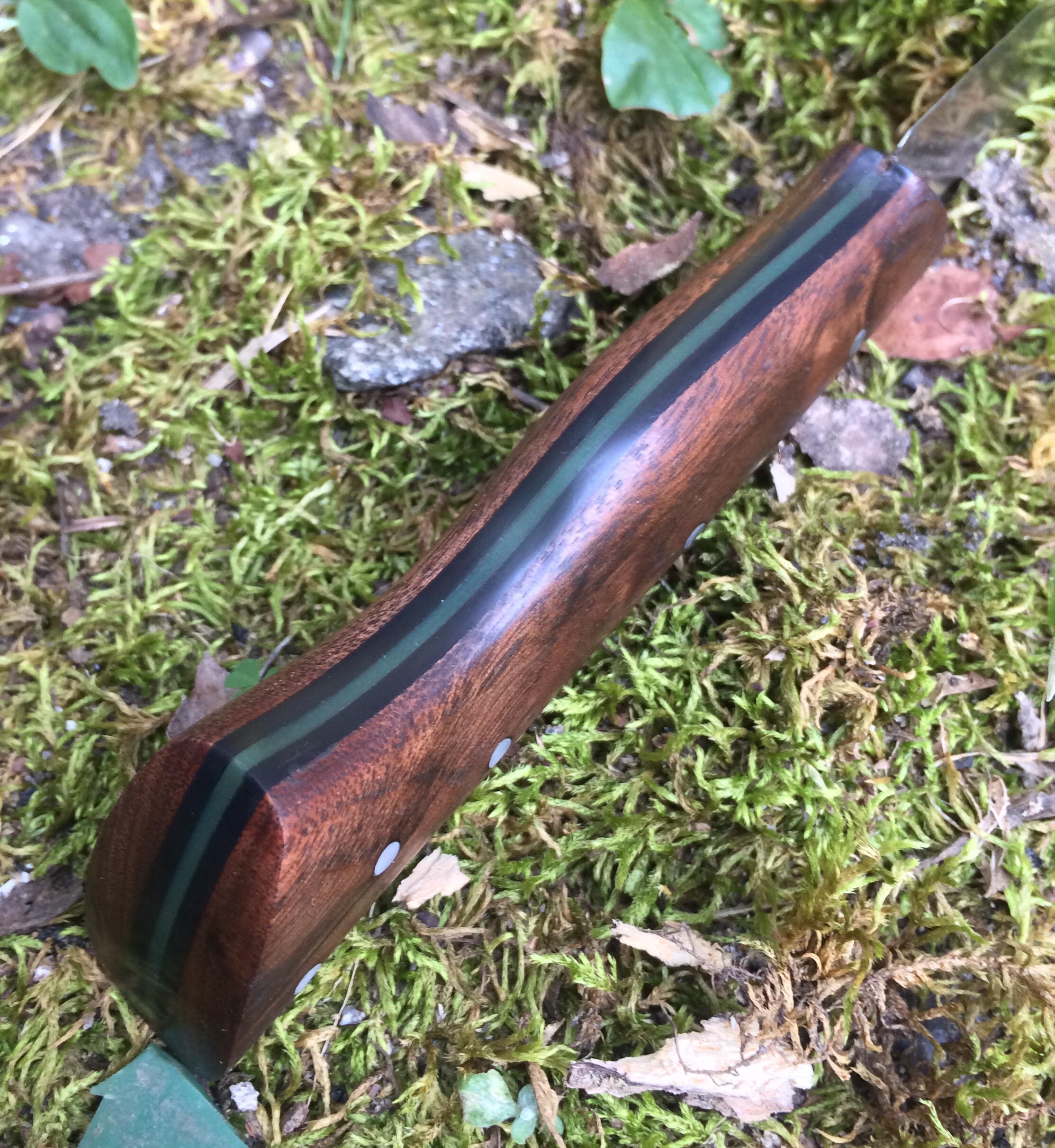 A gentlemen contacted us about re-handling an old boning knife he got in the 1970’s.  It was an old Zwilling knife, made from good Solingen steel, with Zwilling’s proprietary ‘Friodur’ subzero tempering process.  The handle had cracked, as natural materials tend to do over the years.