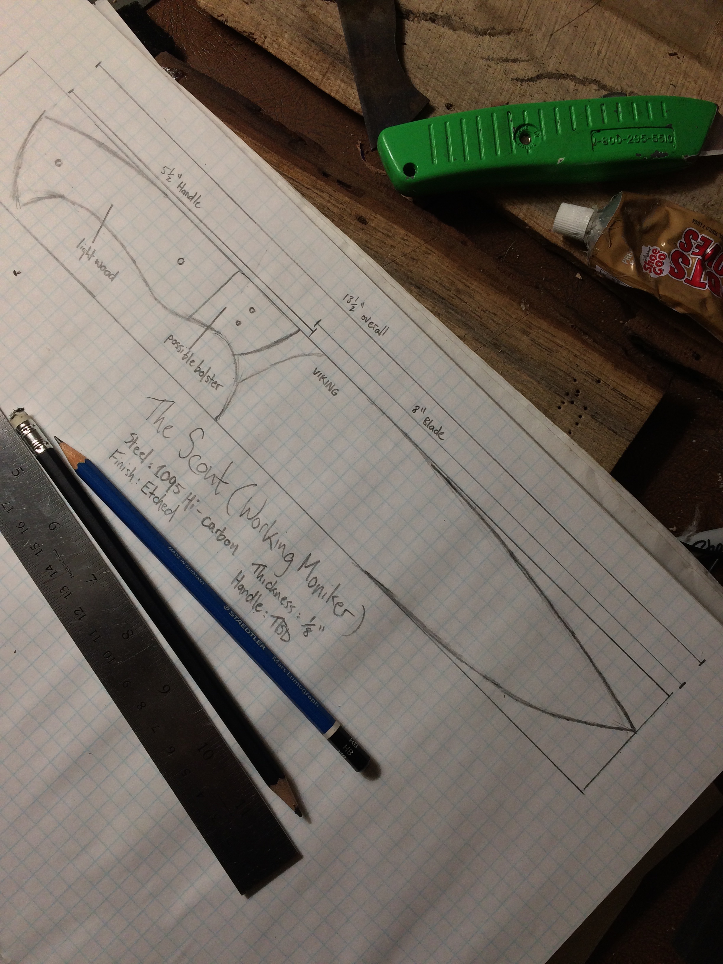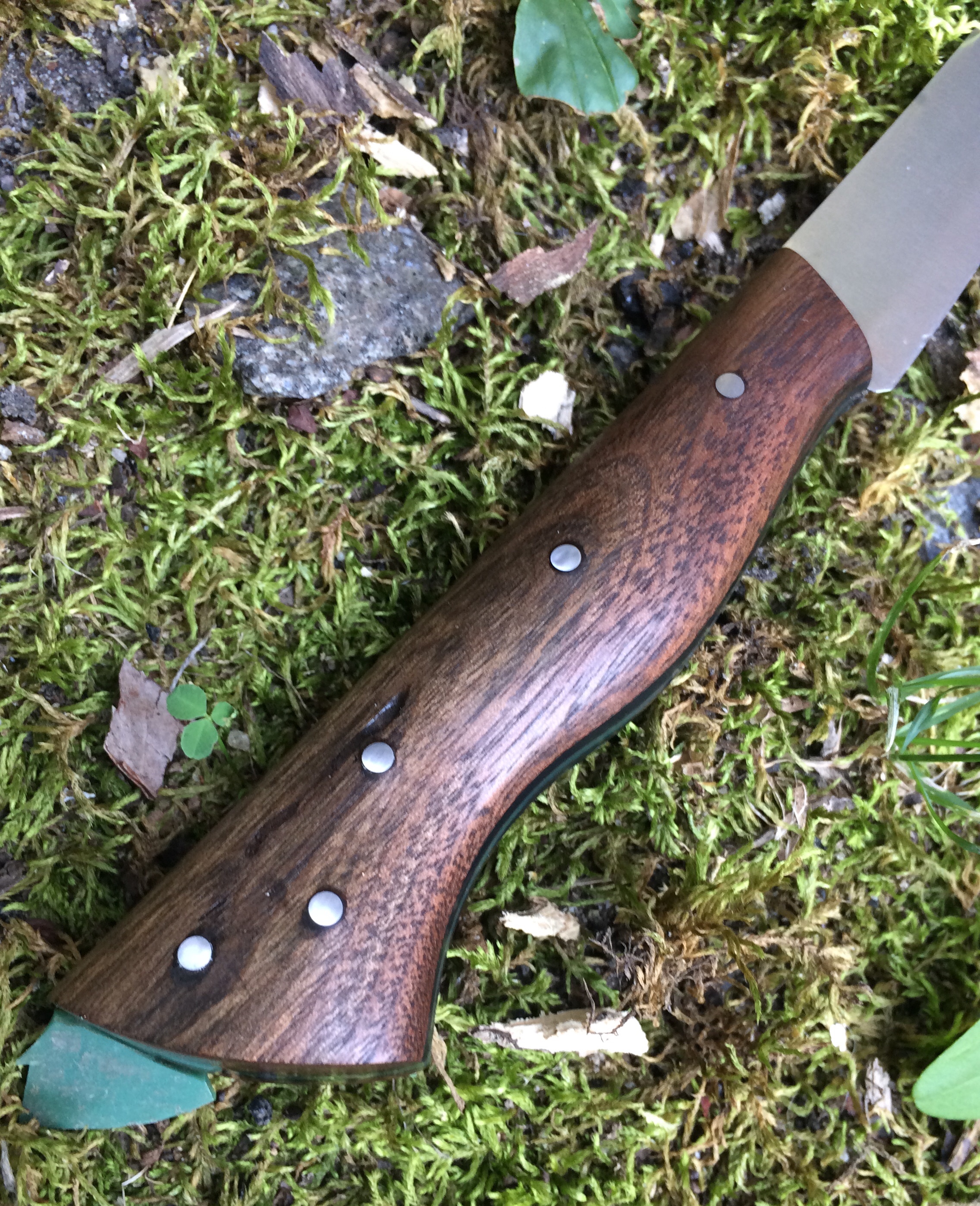I was told you have made it eleven times around the sun this year. Eleven! In celebration of this, your dad commissioned me to make you a special knife, which was convenient because I prefer to make knives that are special regardless! I like to make them out of things I find- in fact, the knife I made you was made out of materials that I found in the garbage. The blade is made out of an old bedframe that I can harden and the handle is made from walnut pulled out of an abandoned house.