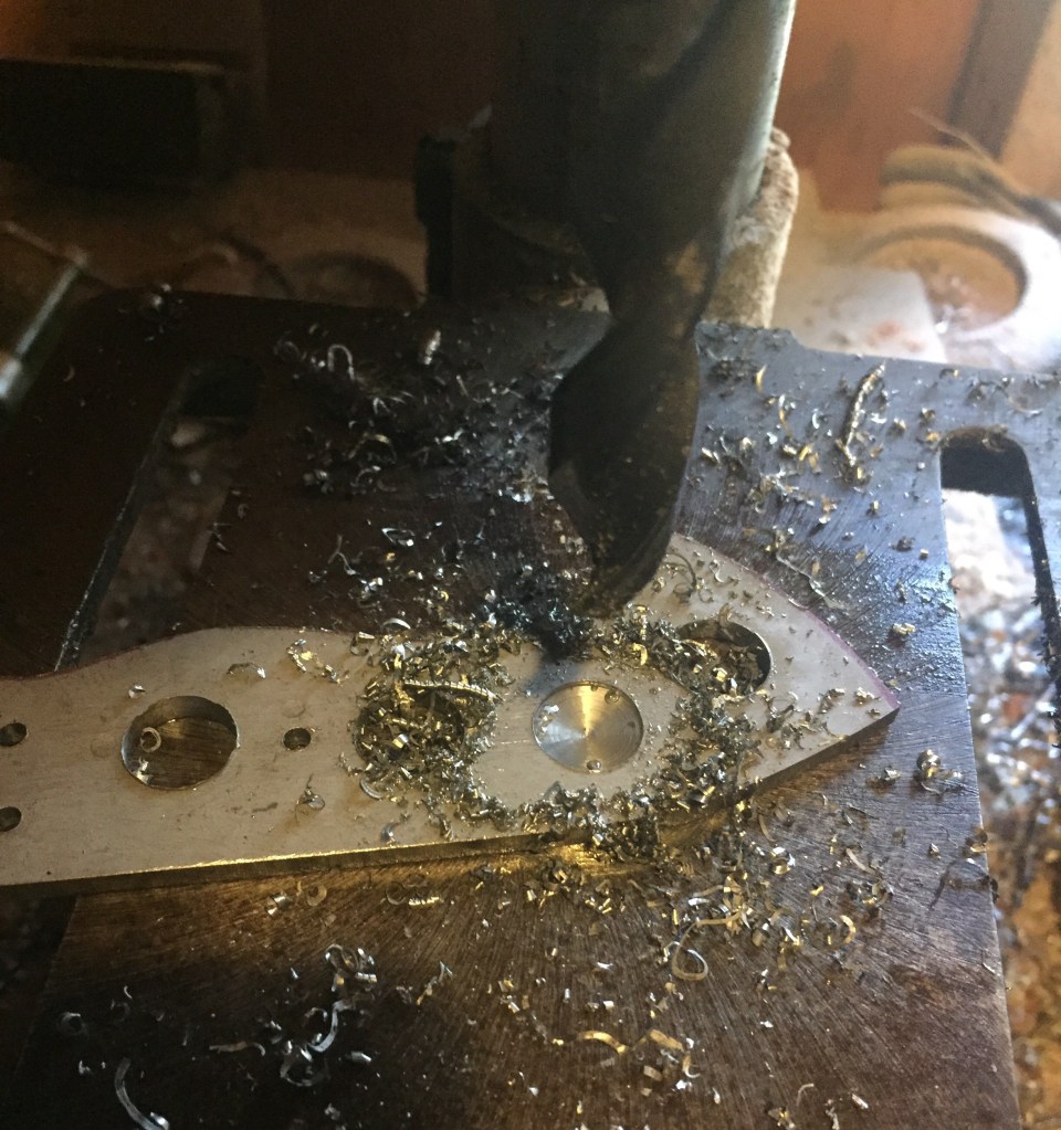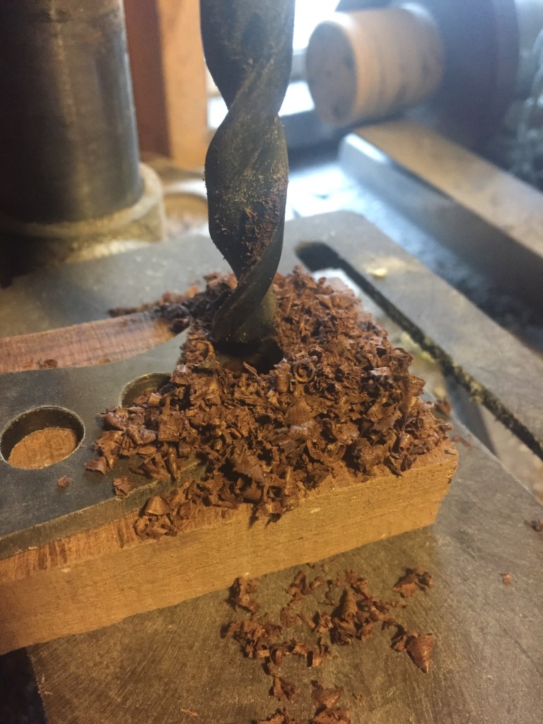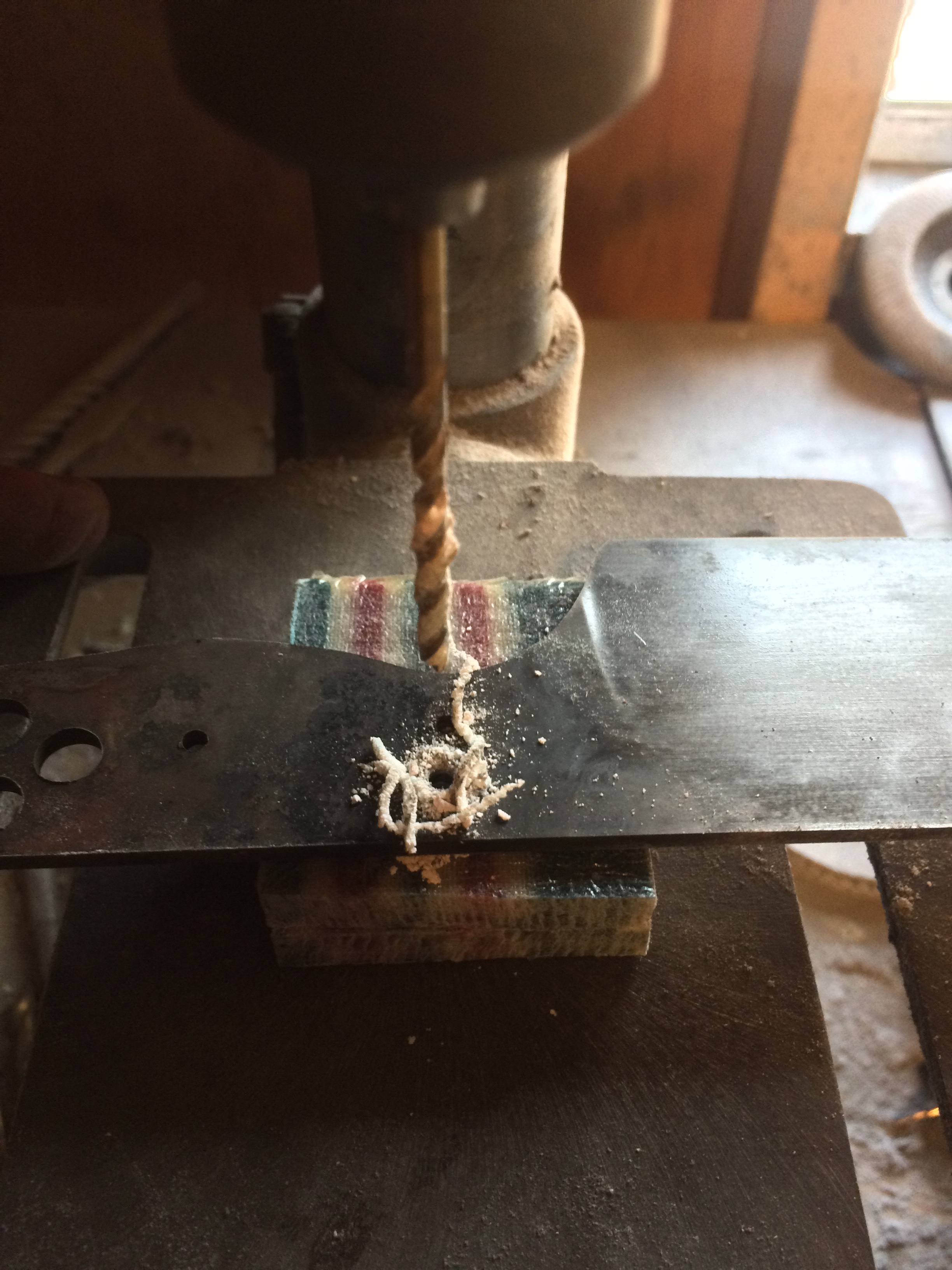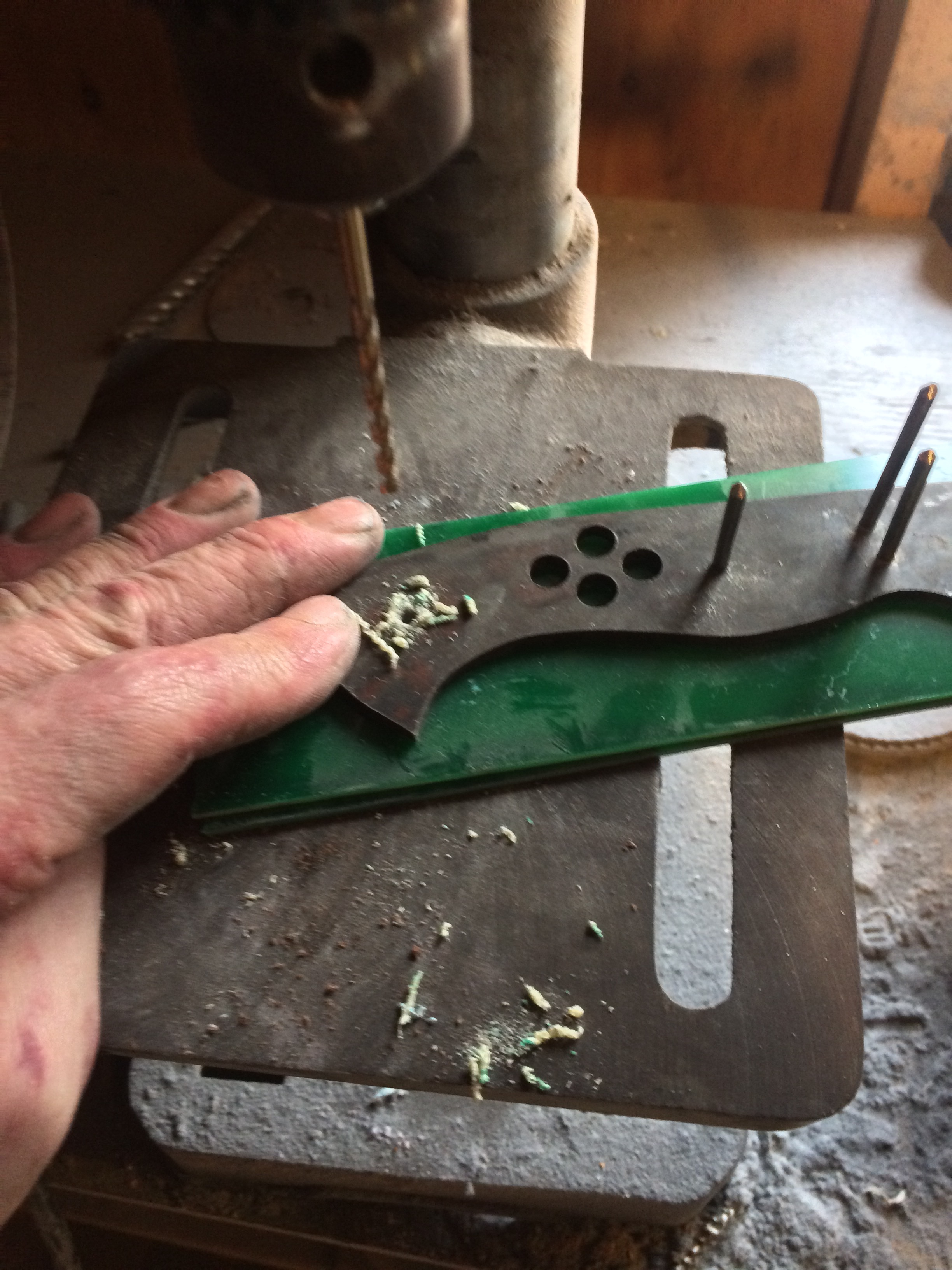 Drilling the rivet holes.  The black spacing material is a heavy plastic that came from an office mail separator: