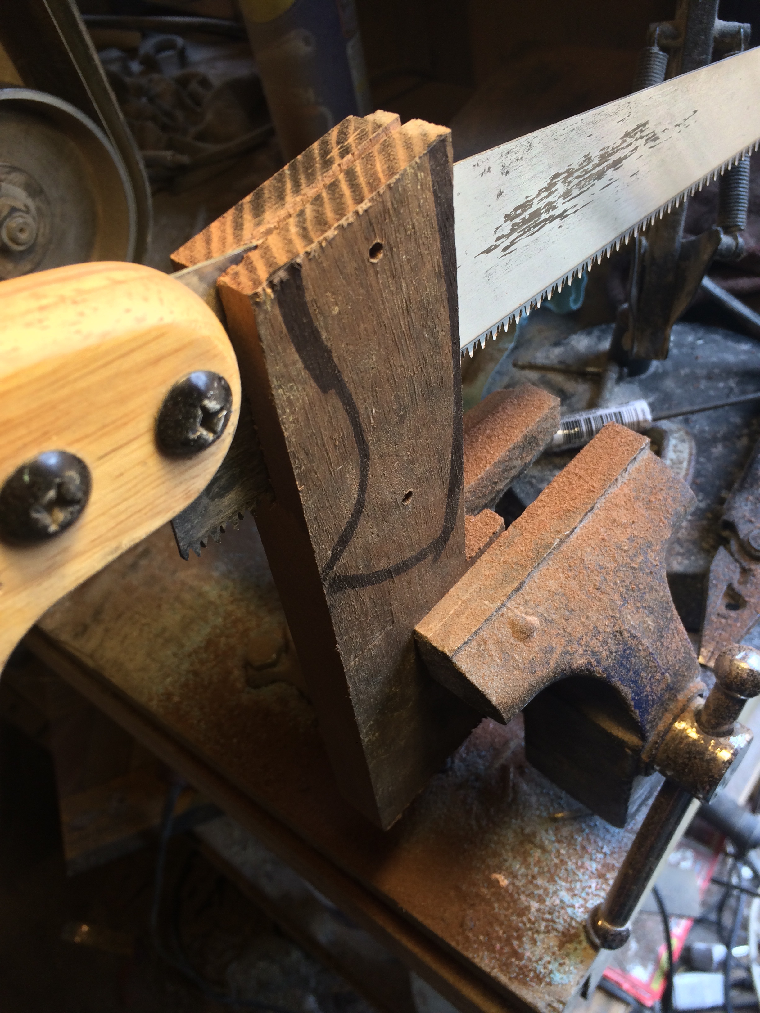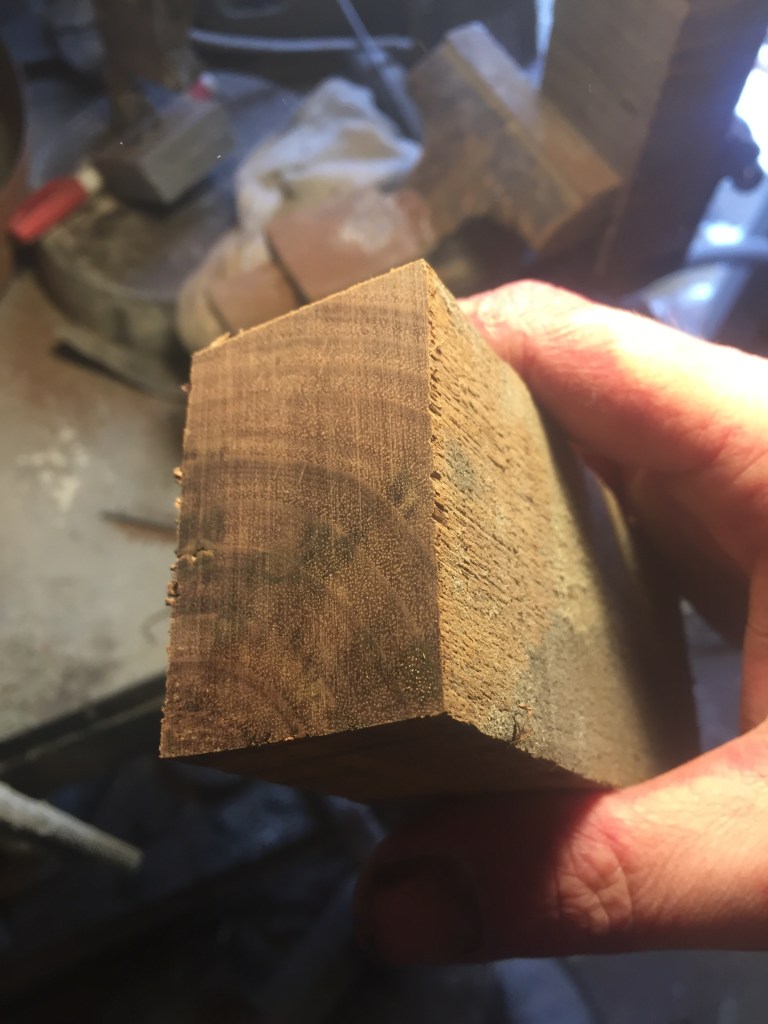 For the handle we’re going to use Black Walnut, which was formerly a baseboard salvaged from an abandoned house in North Carolina: