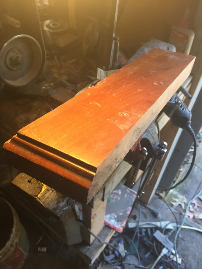 This piece of trim molding came from an abandoned house and is made of Black Walnut.  It doesn’t look like much right now: