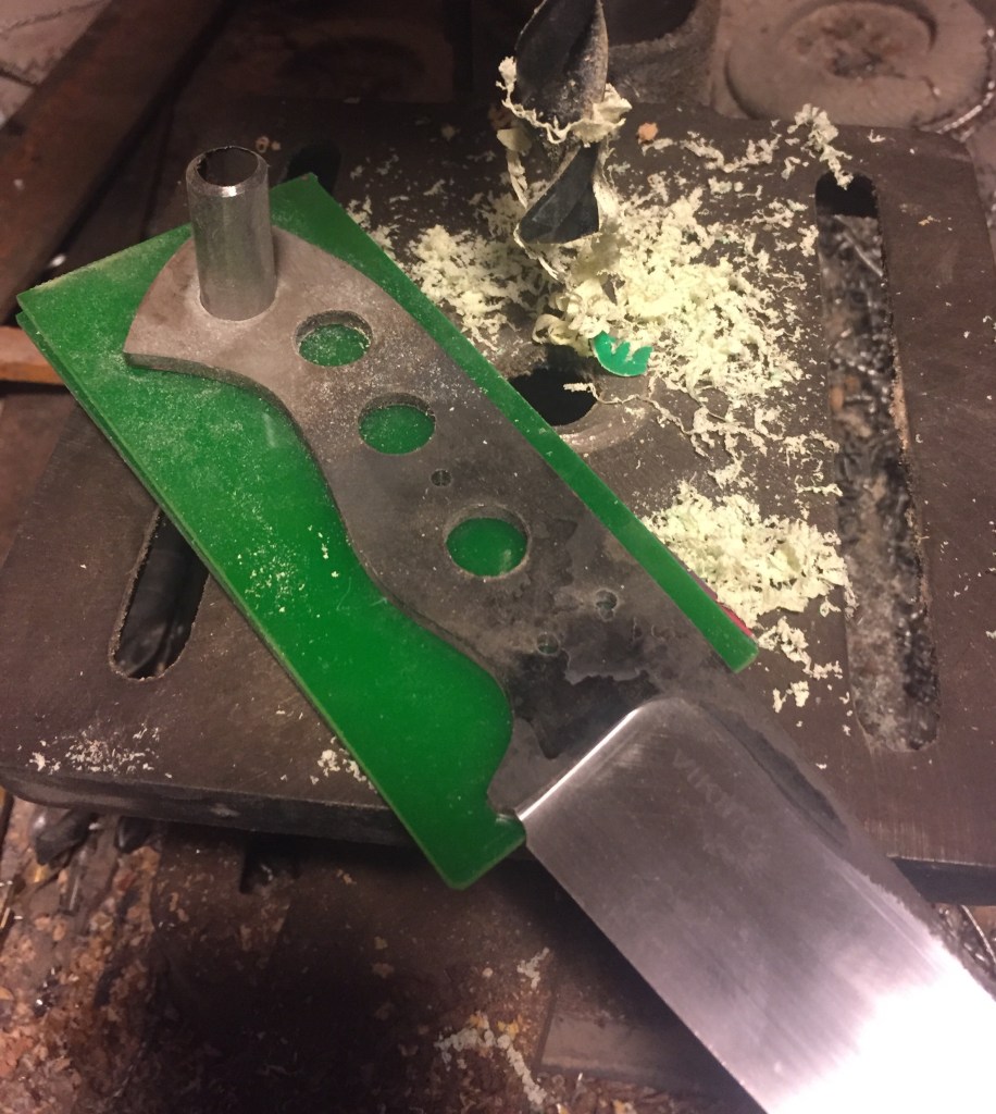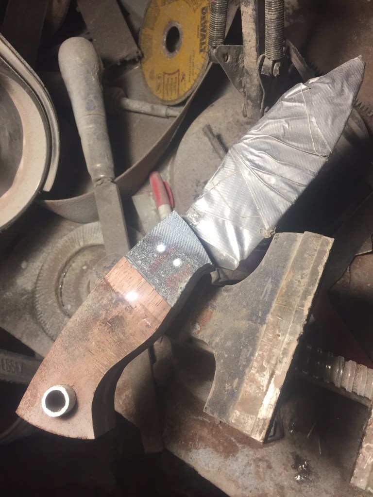 This one was partial tang, meaning the metal in the handle doesn’t run the complete length of the handle: