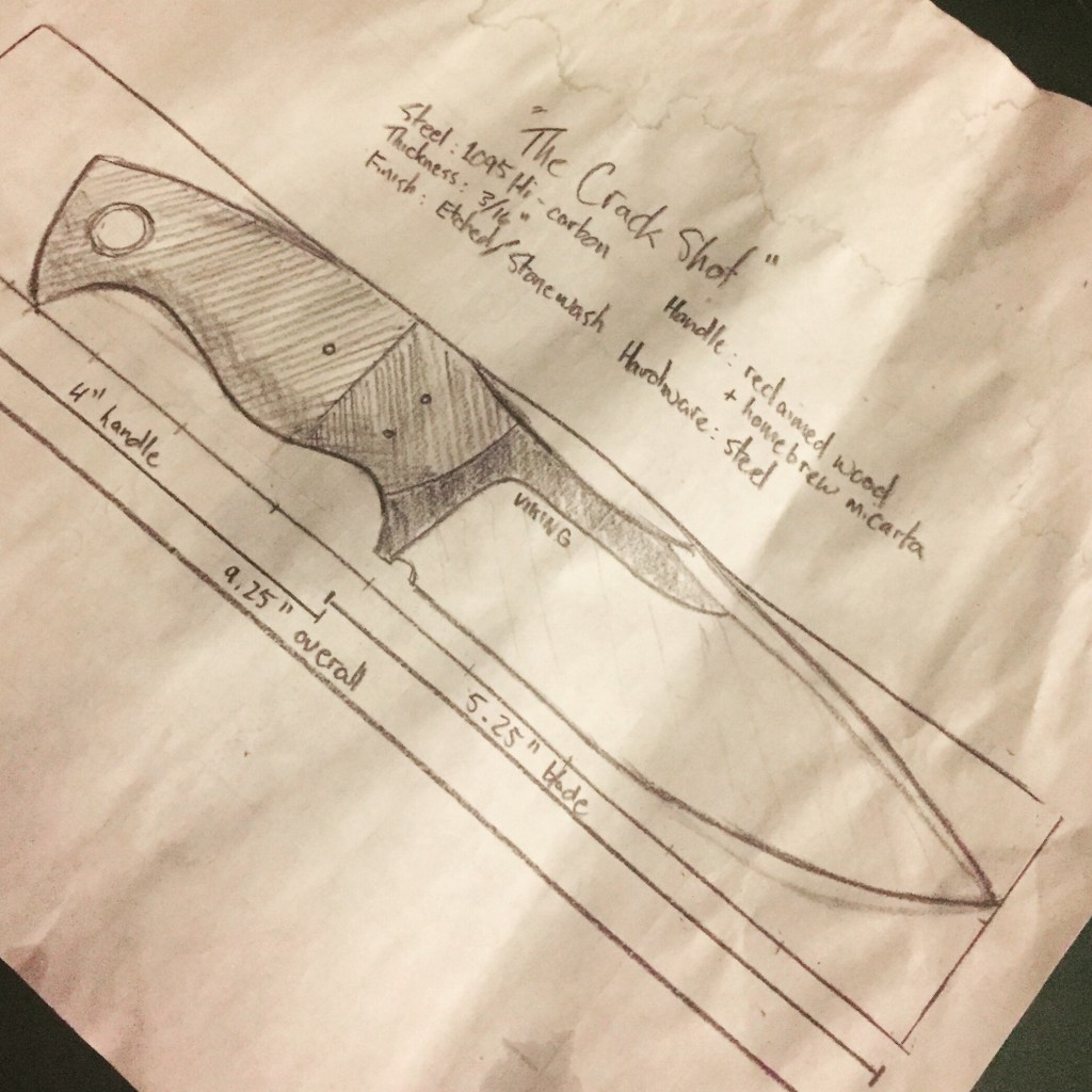 The Crack Shot is a nod to this idea that the sum of our experiences can always help us hit our mark. It was built for a hunter and a woodsman. “Crack Shot” is an homage to his grandfather, the original Crack Shot, who taught him about being with nature, shooting, and how to hit your mark. It is the intention of this knife, with it’s blend of handmade and reclaimed material, to help it’s recipient remember the man who helped him be where he is today.