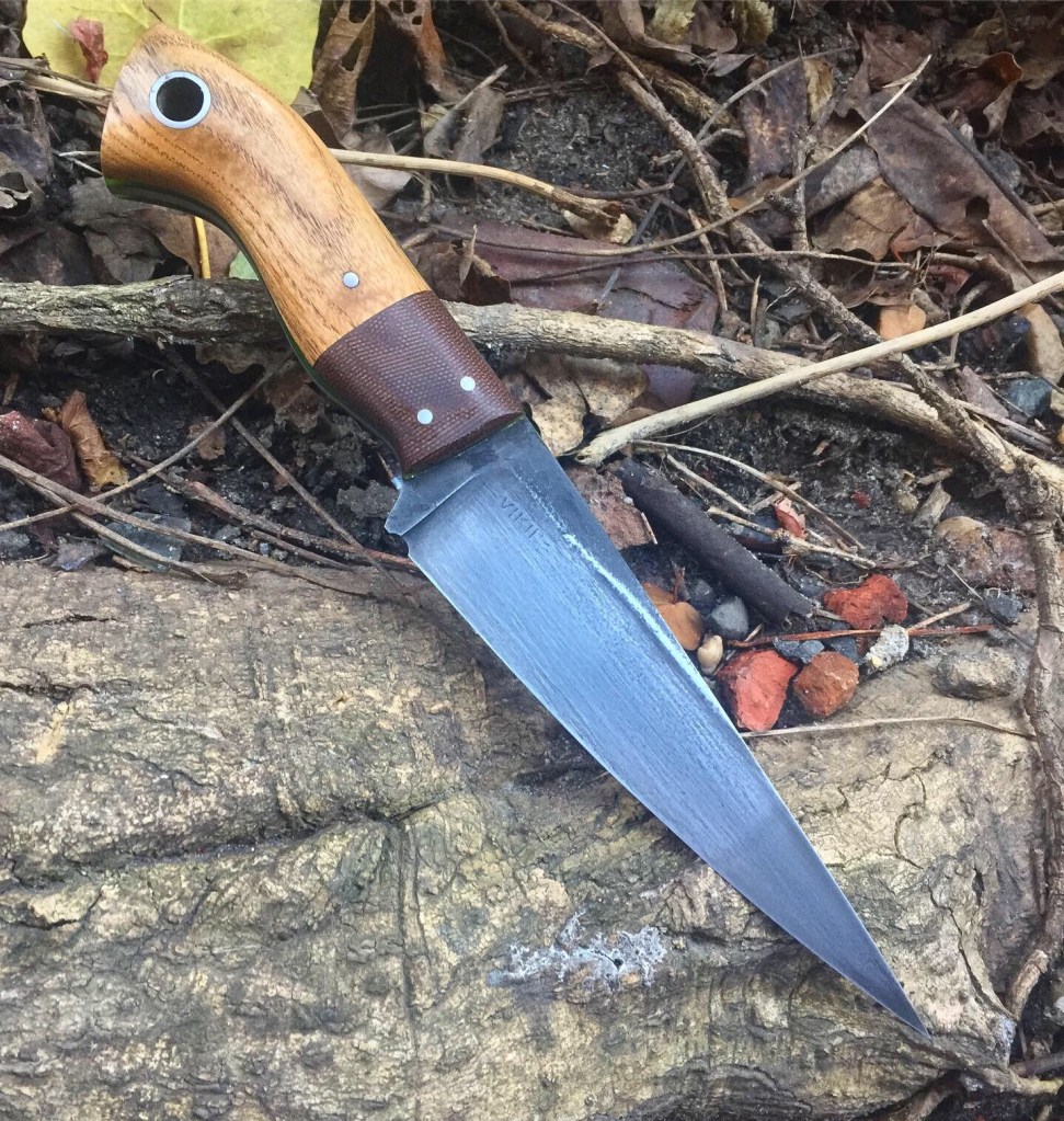 Puttin’ on the Fritz was commissioned by an old friend of mine that I went to music school with. It was built for his brother, a member of the Army Special Forces. My friend and I have worked in similar industries where teamwork at a high level is essential, and this is no doubt the case for his brother. I designed a beefy fighting/utility knife with a harpoon point and a hardened skullcrusher on the butt of the blade. “Puttin’ on the Fritz” is a nod to the things that go wrong, and how we respond to them. It’s not a matter of if but when. Having a really good team helps you to accomplish things bigger than yourself and move through the adversities.