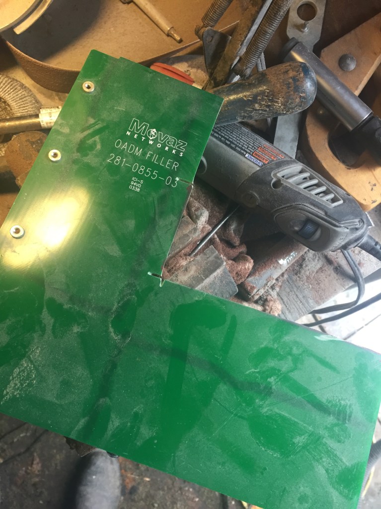 A PCB board blank from a server chassis.  This will be spacing material for the handle: