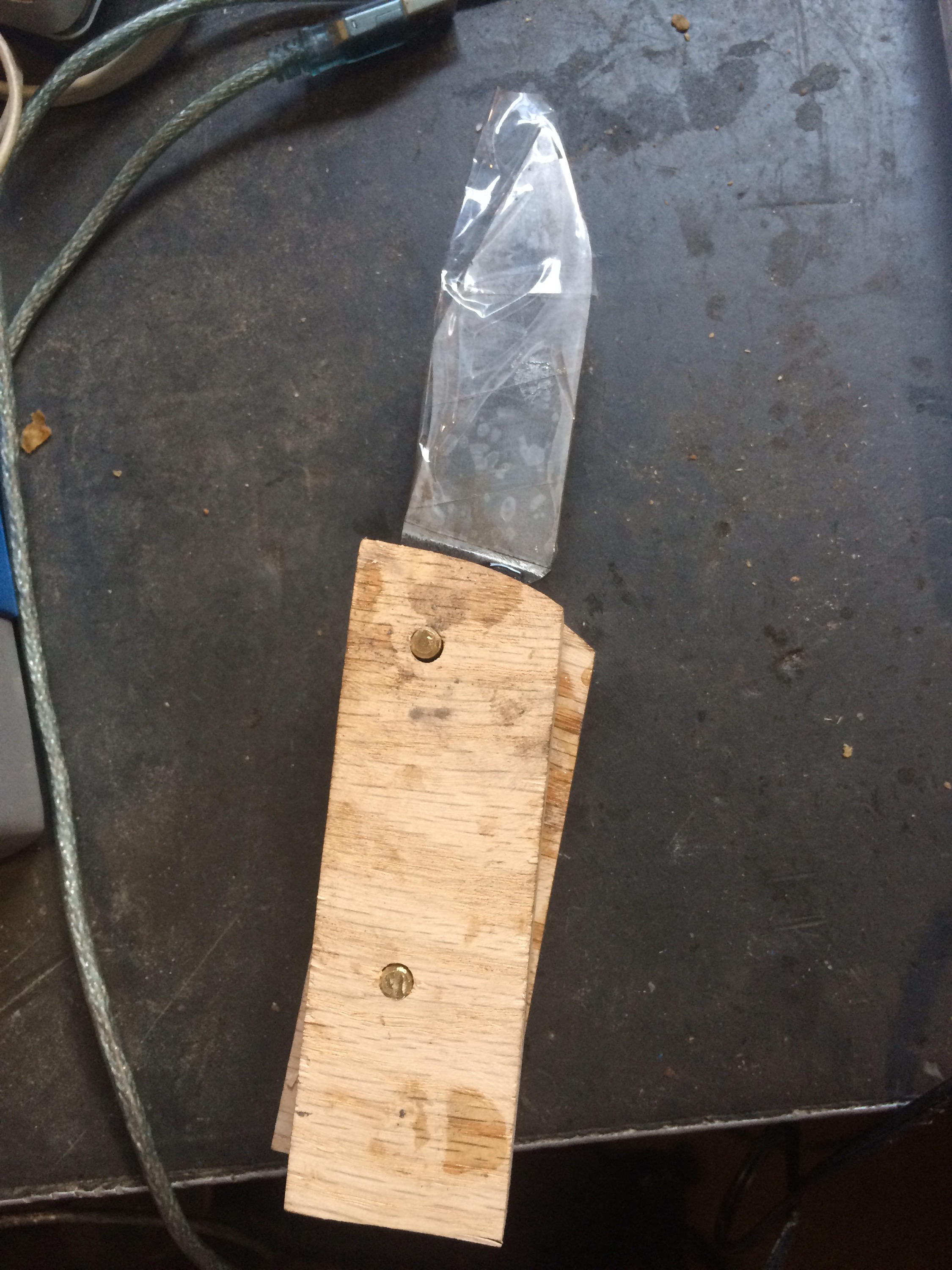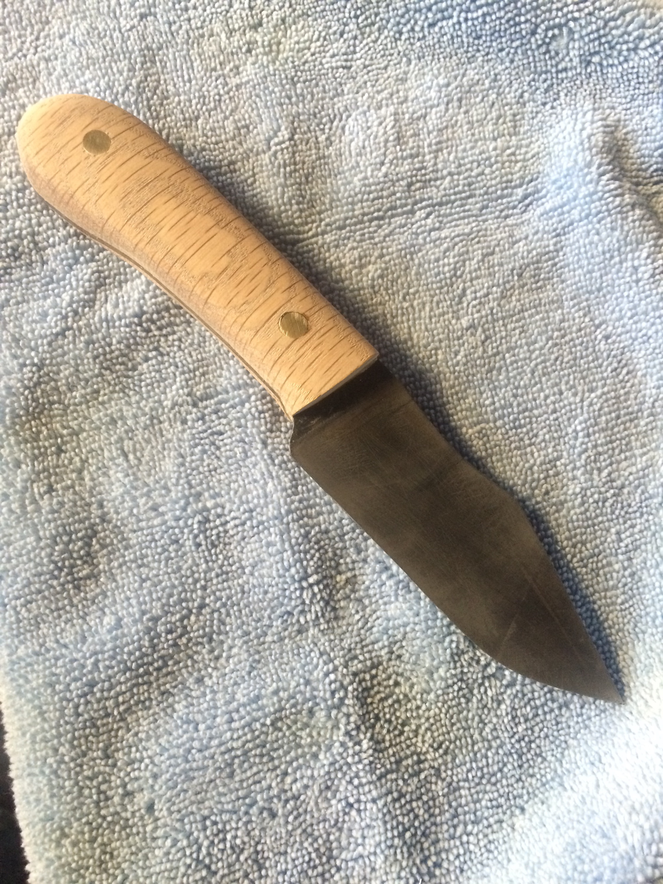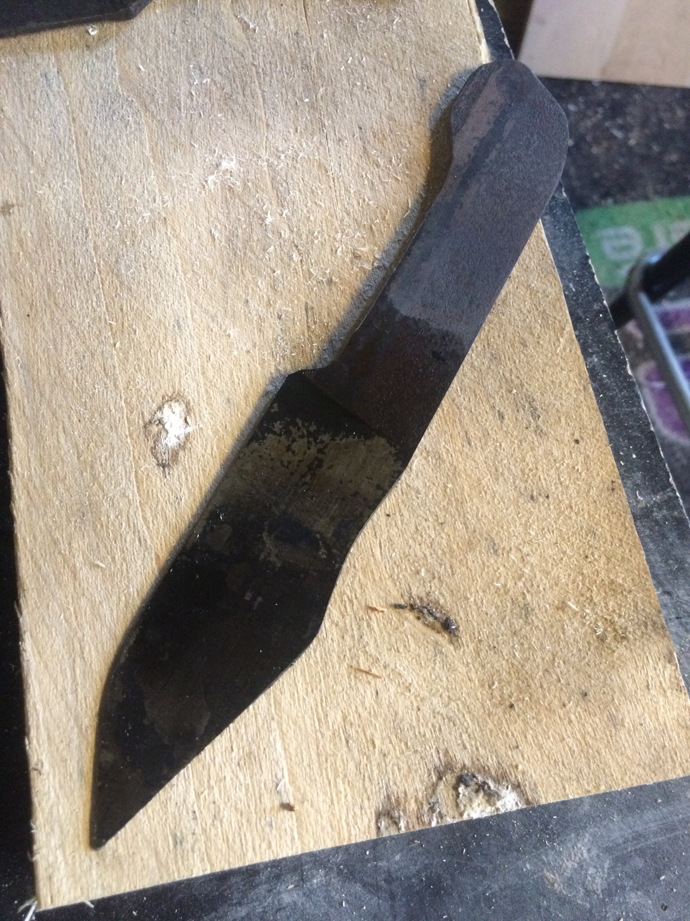 This was the knife I made him four years ago.  It is a hardened and tempered butter knife that allowed him to get comfortable with carrying a bladed tool.