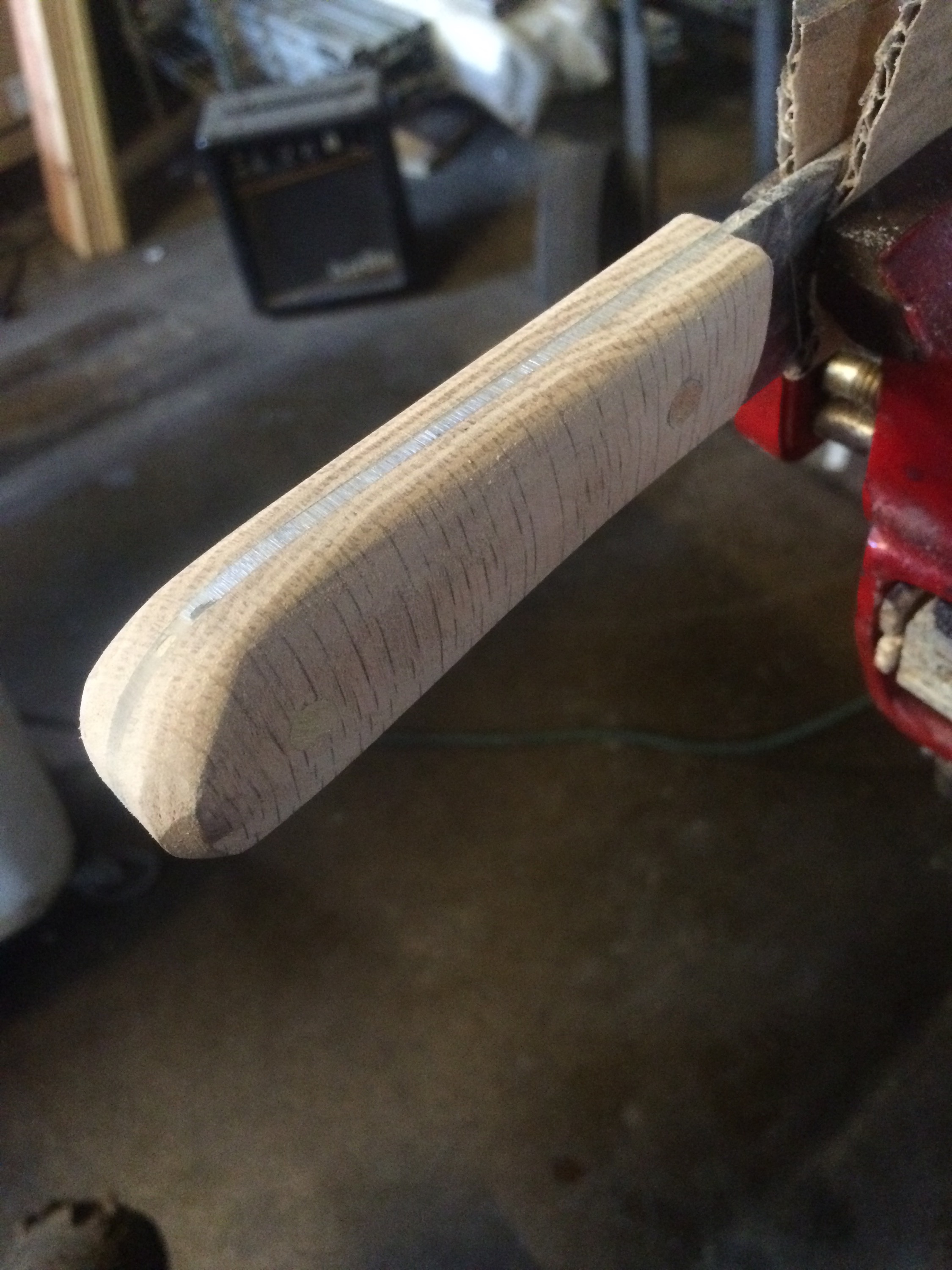 I used white oak for the handle.  I love oak.  It has mass and it’s heavy.  It takes up space and lets you know that it’s there.  In Celtic lore, oak is a protector, wise and strong and a bridge to otherworldly places.  I wanted that for this blade.