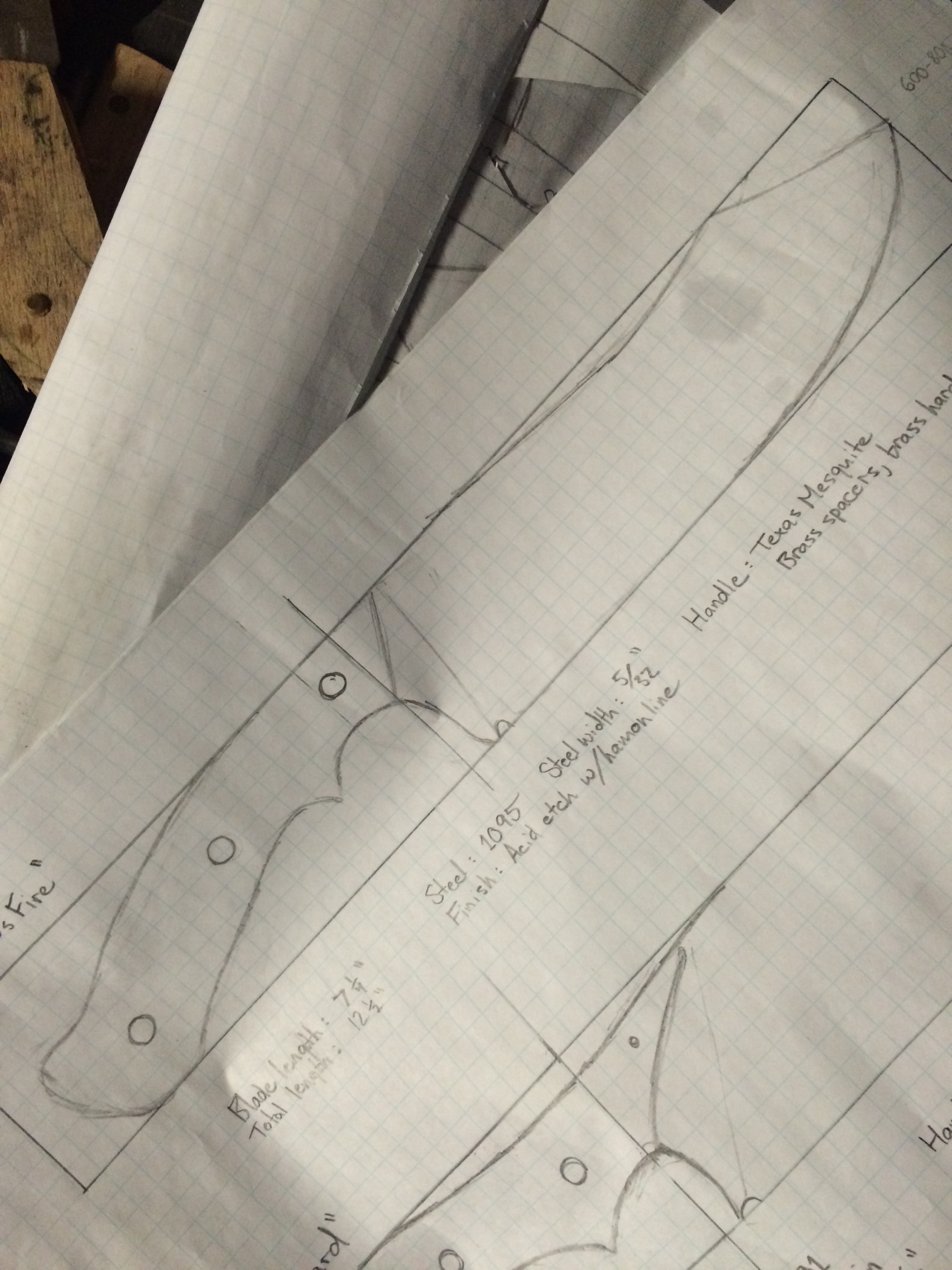 St. Elmo’s Fire: 1095 spring steel with a phosphoric acid etch, Texas Mesquite handle and brass hardware.