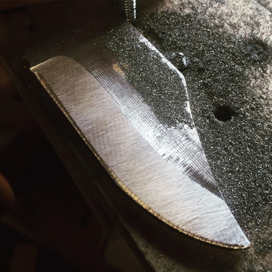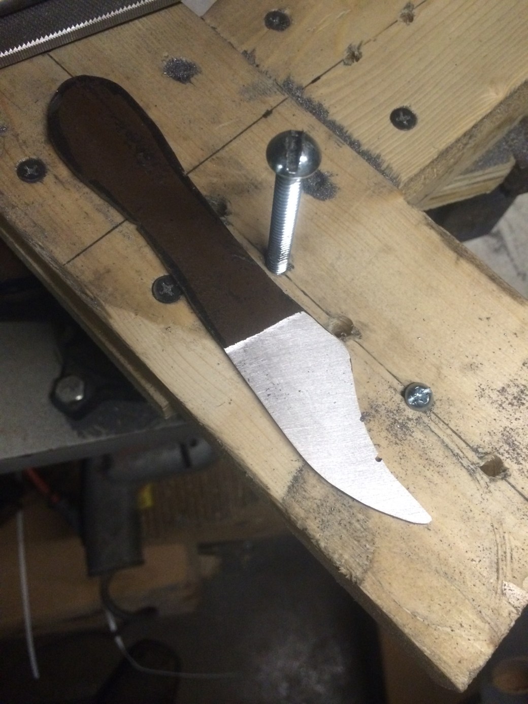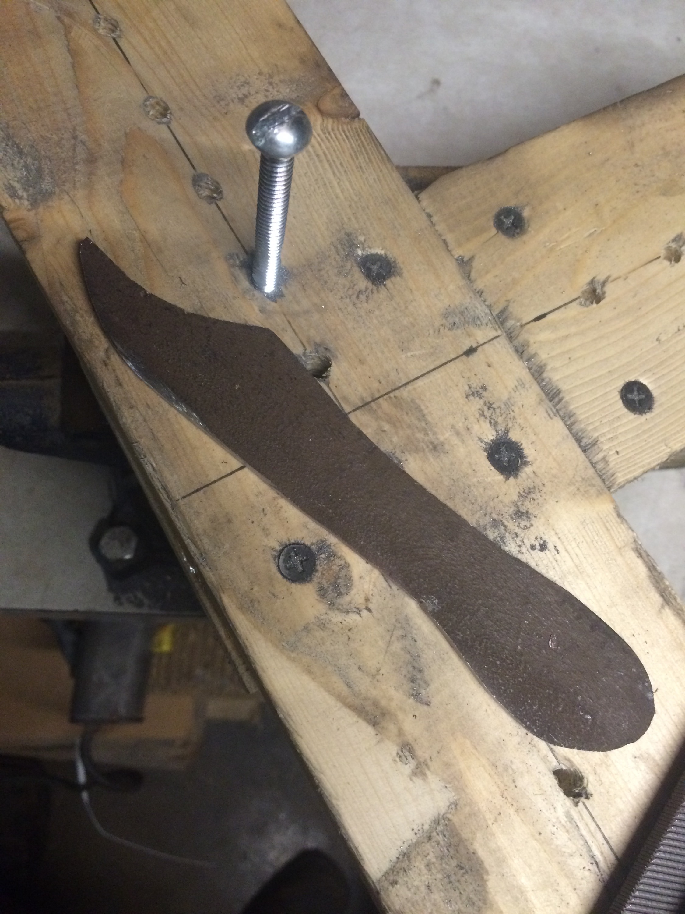 I designed four of these lovely ladies and had my friend pick which on he liked best. These three didn’t quite make the cut and that’s ok. I went with a drop point blade- the right balance of tip strength, belly, and piercing ability. Good for farm work.