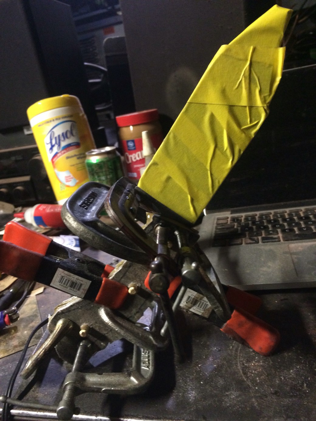 ….this knife came back to me with a cracked handle, which can happen with natural materials. I removed the old handle and put a new one on it: