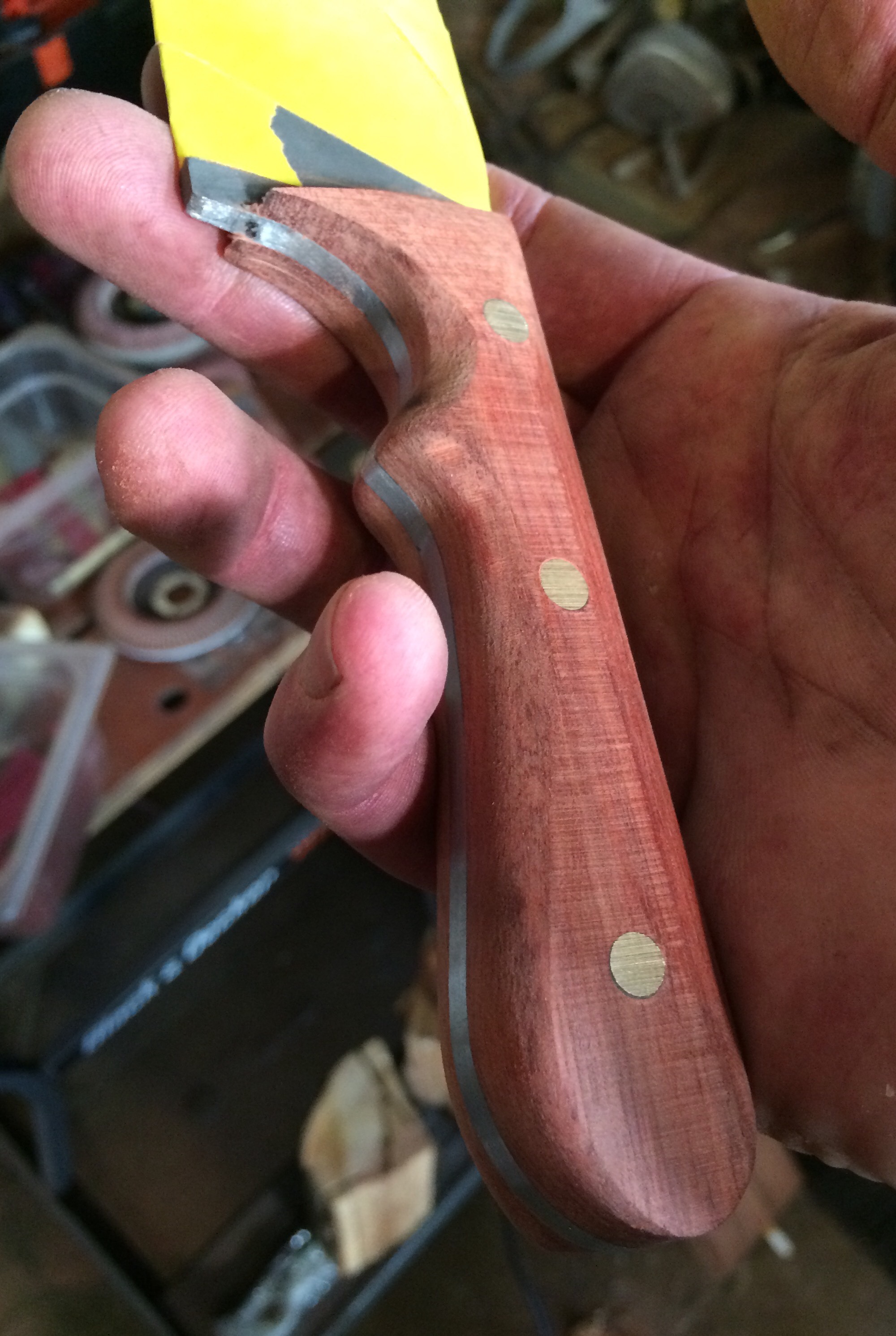 The Esperto Universale is made of high carbon steel, which means it will take a keen edge, hold it a good while, and will be easy to sharpen. It will stain and patina and tell the stories of the places you’ve been- this natural and characteristic of the steel. Your knife is made to be used so don’t be shy about getting it dirty. Be sure to keep your knife clean and oiled when not in use. Should you find any unpleasant surface oxidization you can remove it easily with a lightly oiled bit of 0000 steel wool, or a coarse rag with a bit vinegar on it.