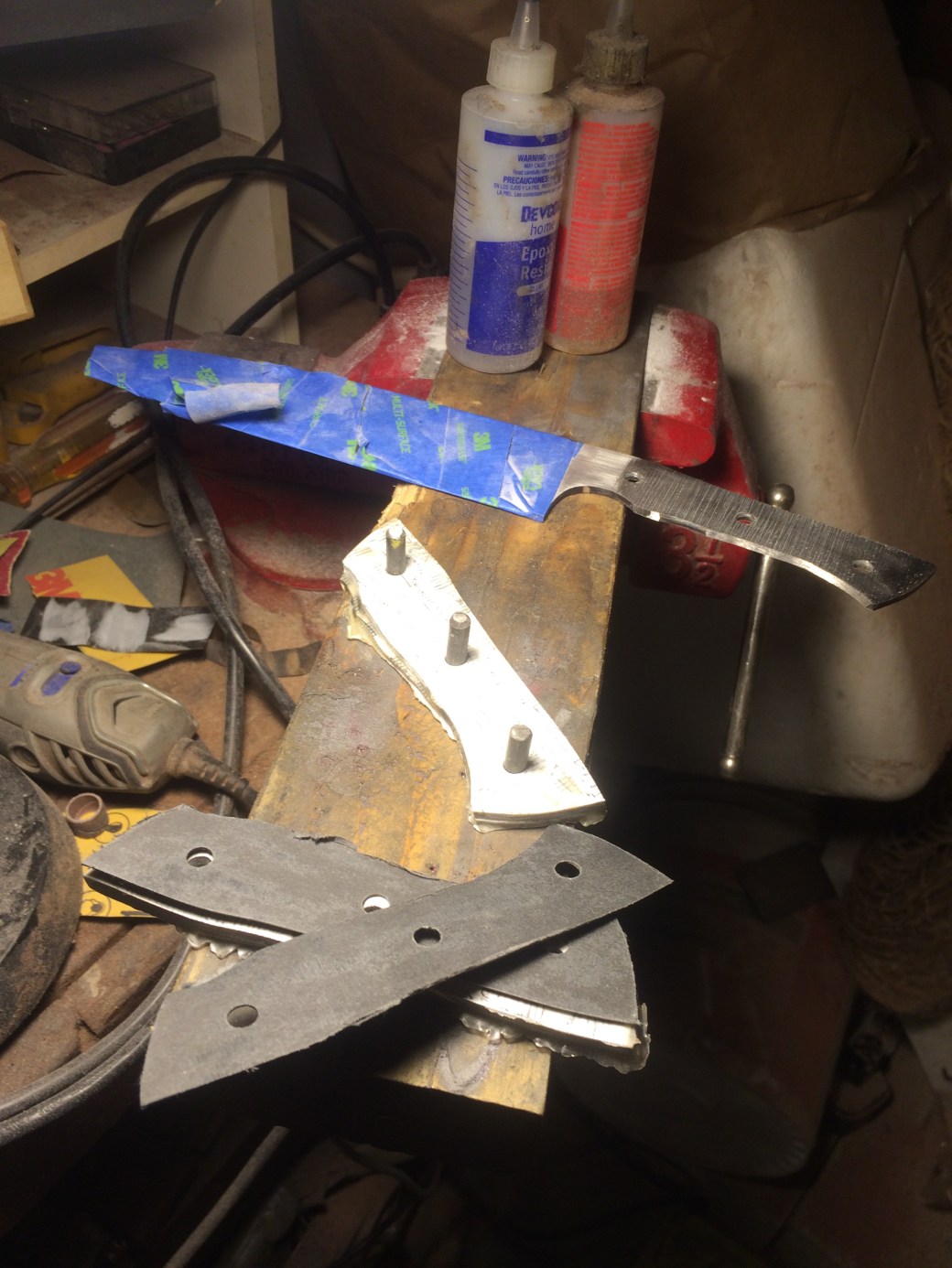 Doug asked for a chef’s knife, for the kitchen. I started with a piece of thin stock O1 tool steel: