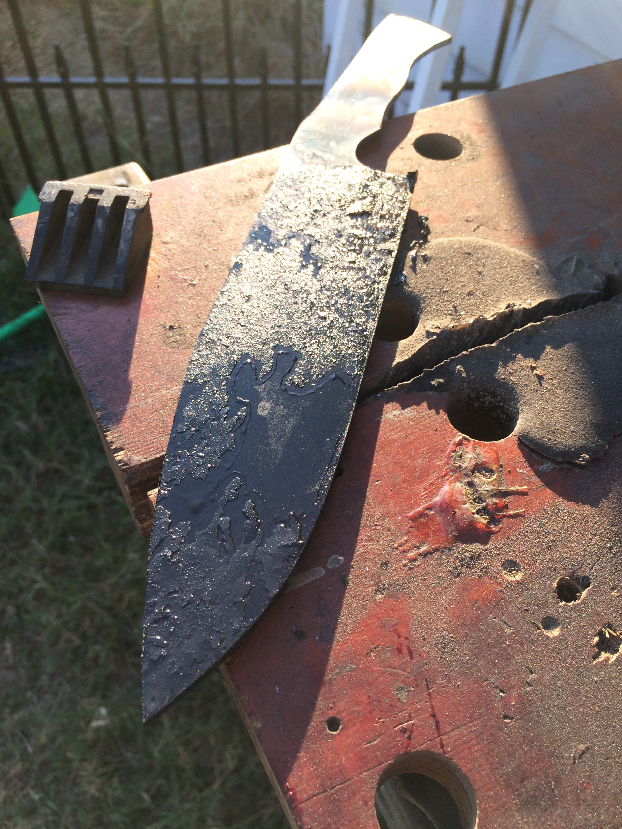 The Esperto Universale is made of high carbon steel, which means it will take a keen edge, hold it a good while, and will be easy to sharpen. It will stain and patina and tell the stories of the places you’ve been- this natural and characteristic of the steel. Your knife is made to be used so don’t be shy about getting it dirty. Be sure to keep your knife clean and oiled when not in use. Should you find any unpleasant surface oxidization you can remove it easily with a lightly oiled bit of 0000 steel wool, or a coarse rag with a bit vinegar on it.