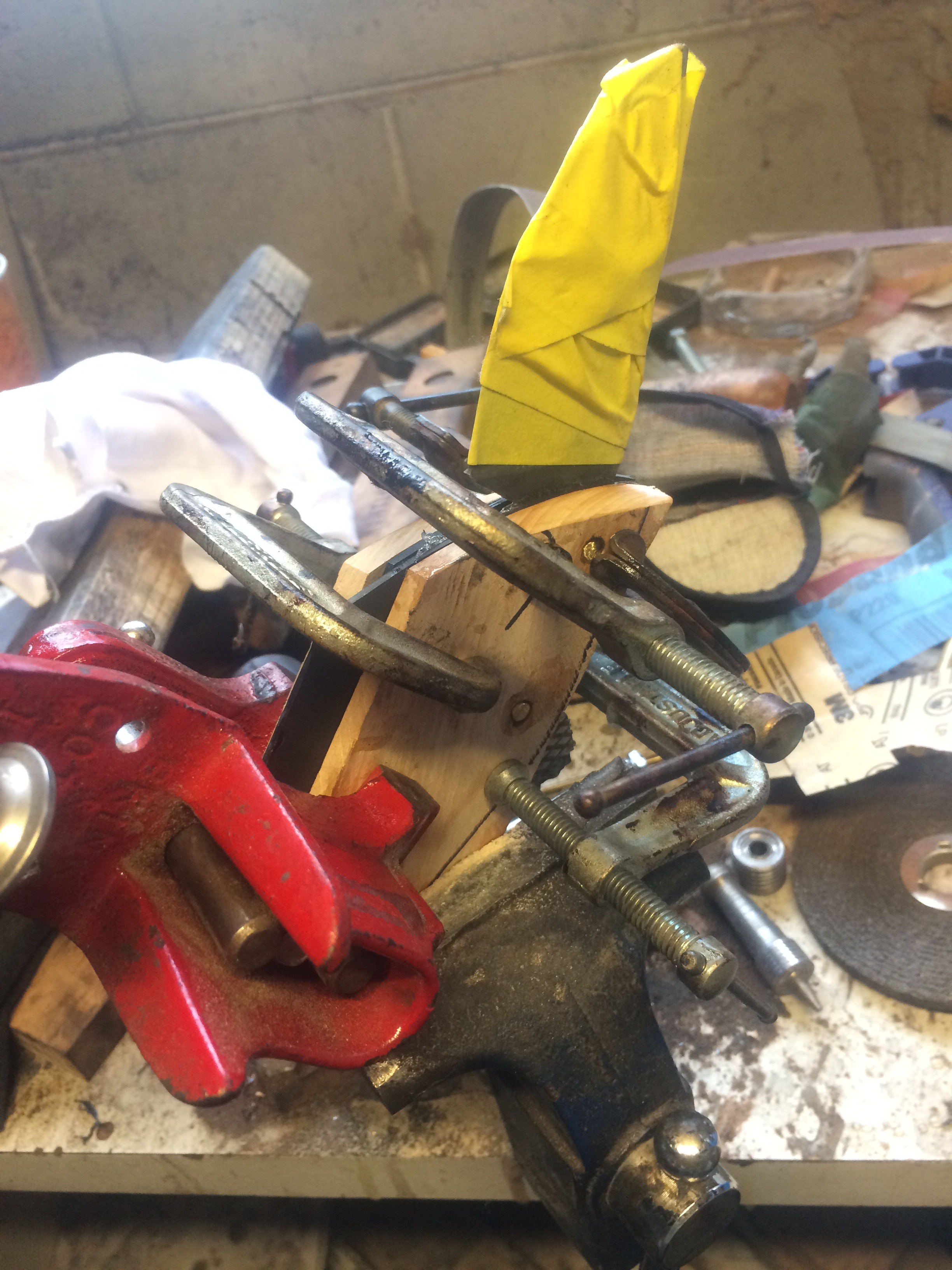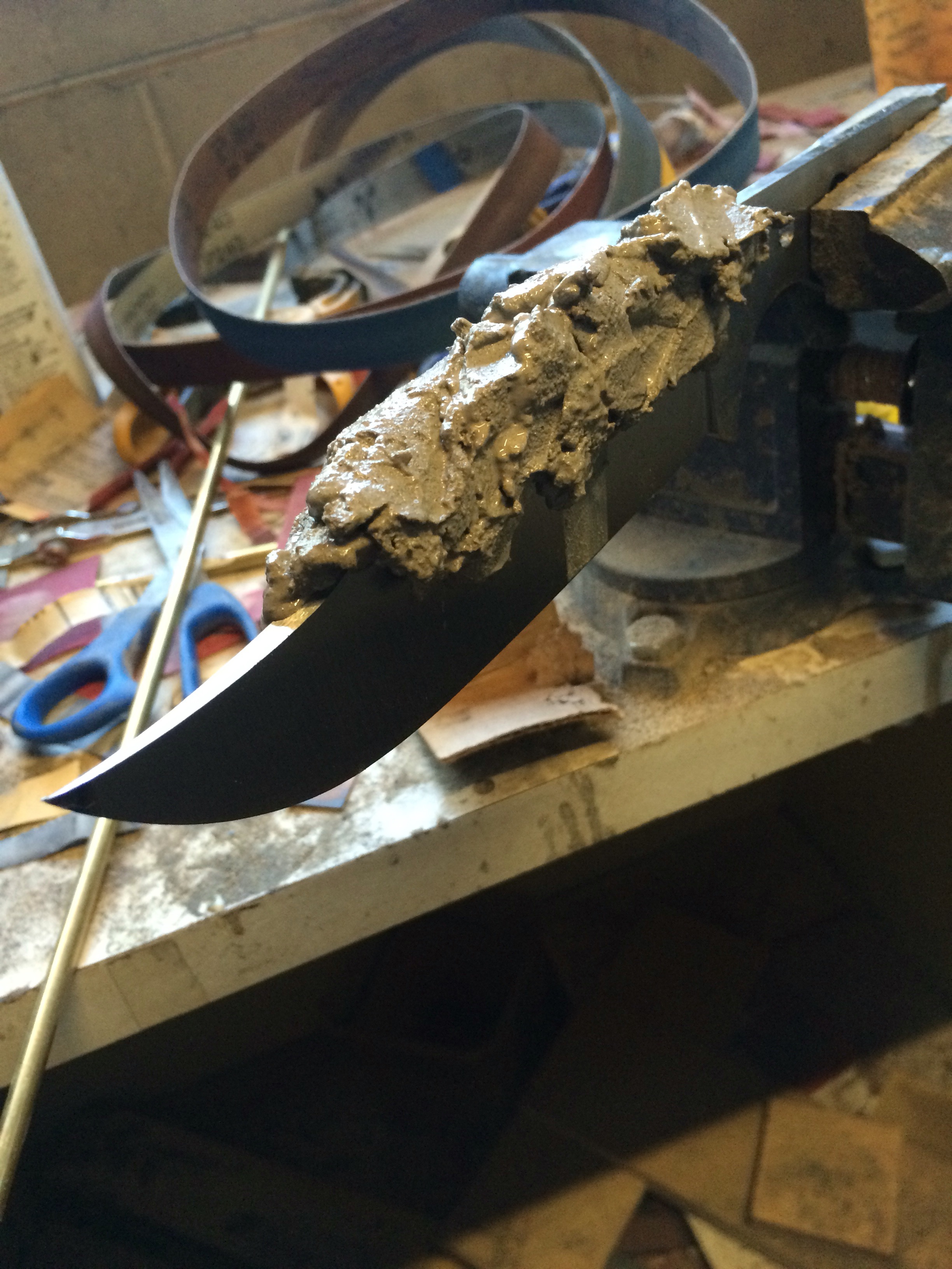 I started with a big hunk of 1095 spring steel- 3/16″ thick