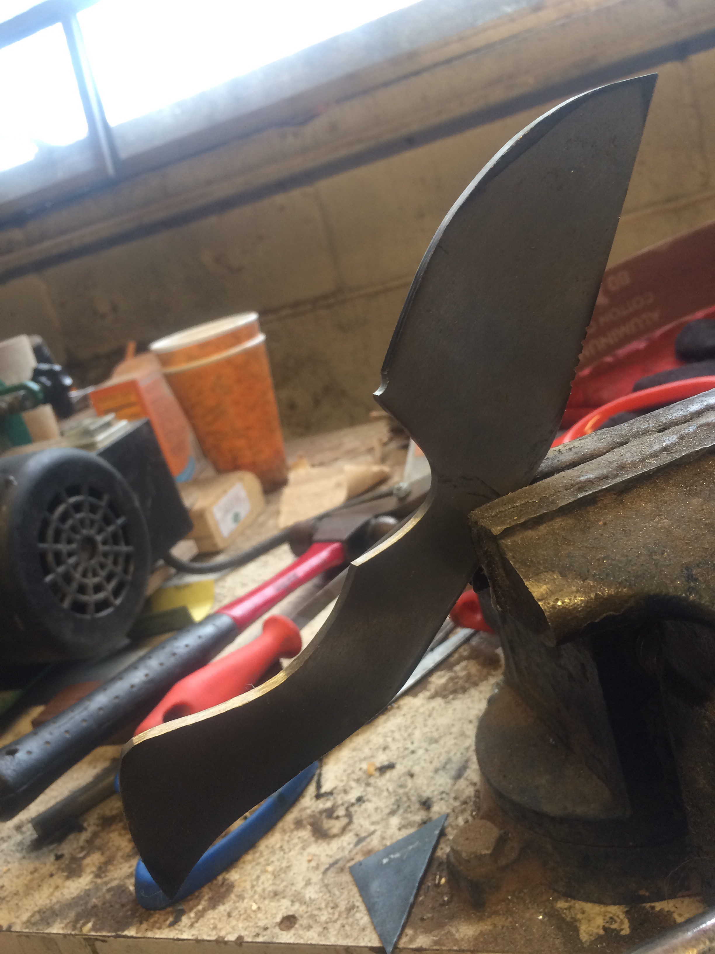 Everything profiled out. Being that it is made from thinner stock, it will go in the forge as is to prevent warping during hardening.