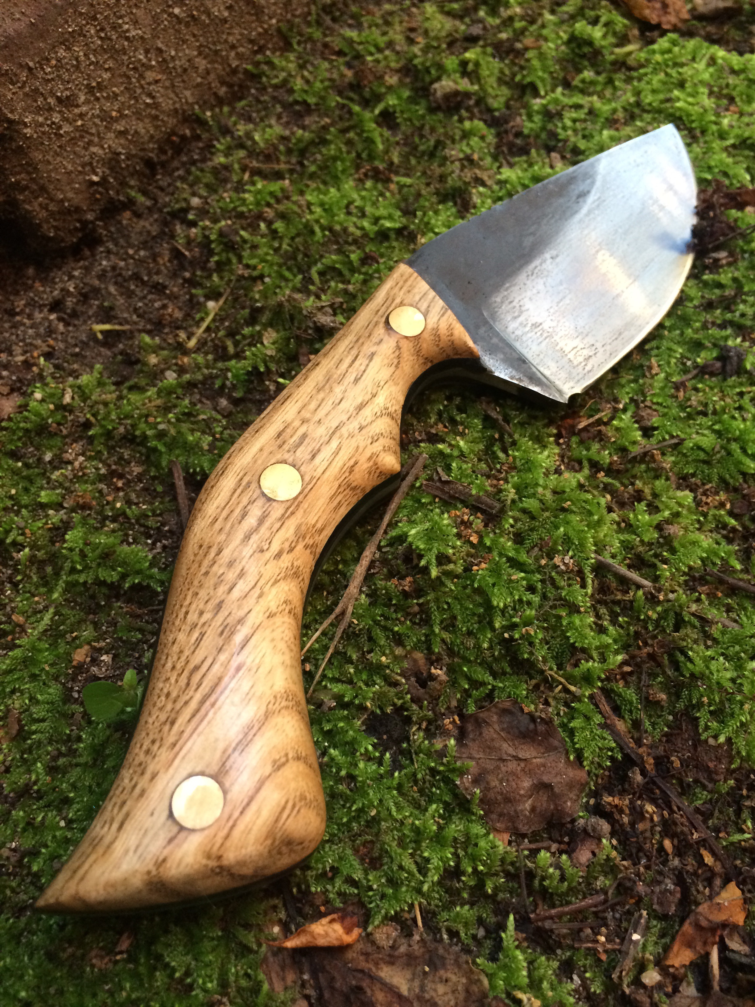 Your knife is made of high carbon steel, which means it will take a keen edge, hold it a good while, and will be easy to sharpen.  It has been etched in acid and shipped to you coated in food safe mineral oil. It will stain and patina and tell the stories of the places you’ve been.  Be sure to keep your knife clean and oiled when not in use.  Should you find any unpleasant surface oxidization you can remove it easily with a lightly oiled bit of 0000 steel wool, or a coarse rag with a bit vinegar on it.  She is built to be used, so don’t be shy about getting her dirty.