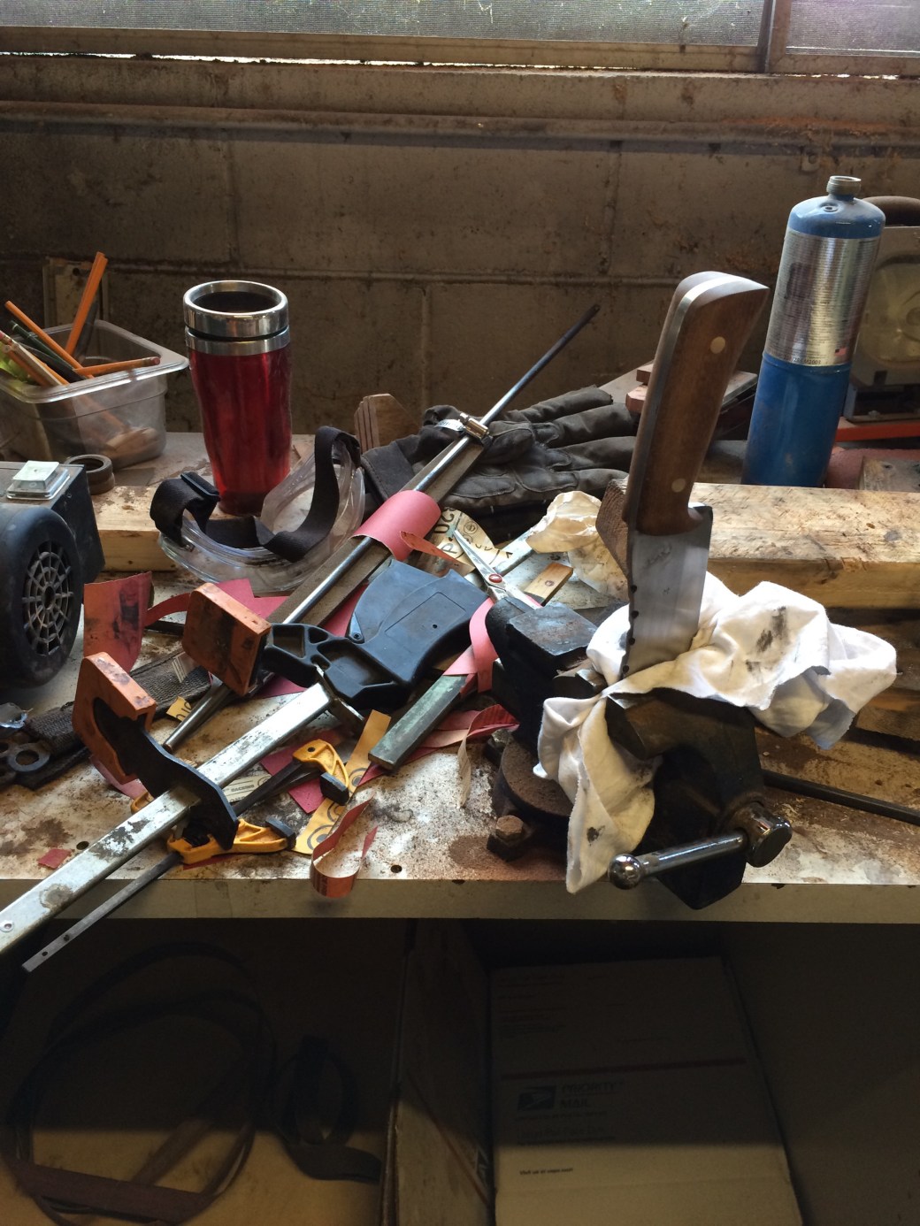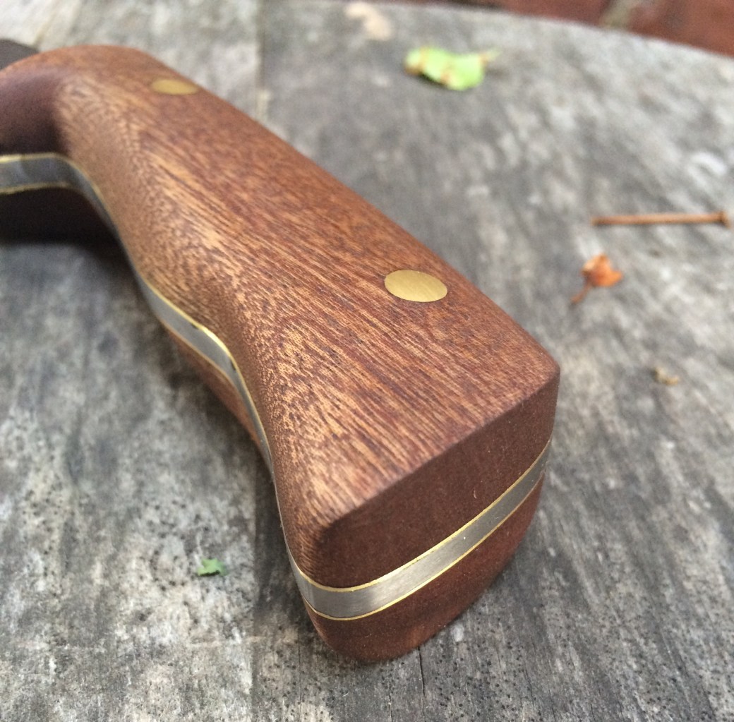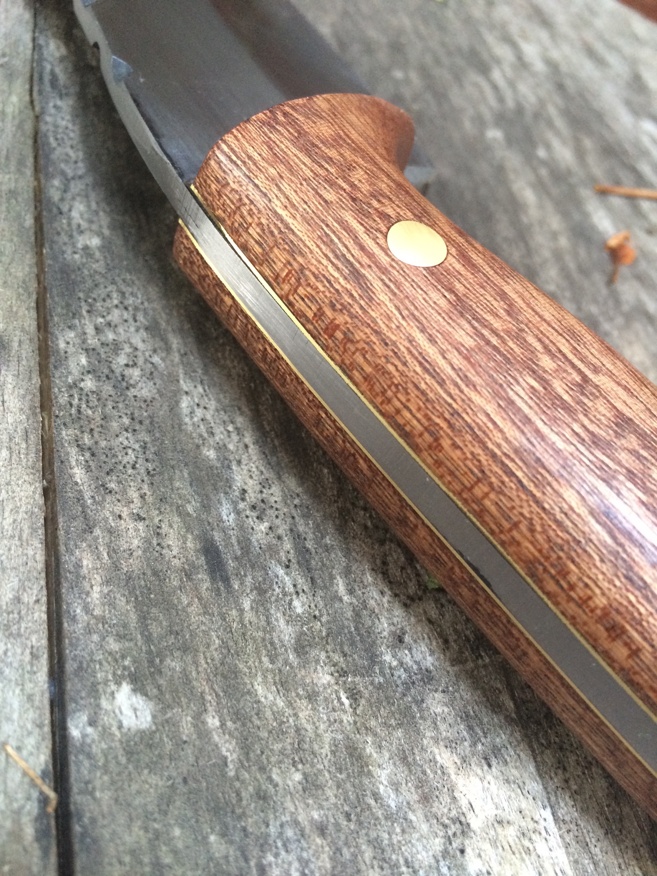 I made the original Persuader without thinking too much about it. The main grind is a sabre grind. I grind all of my blades freehand and as it turns out it is really difficult to get a uniform, symmetrical grind on a 2in wide piece of steel. But I didn’t know this the first time round- I just did it. When I tried to do it again I kept overthinking everything and ruining it. There were two or three between the first one and this one that got scrapped.